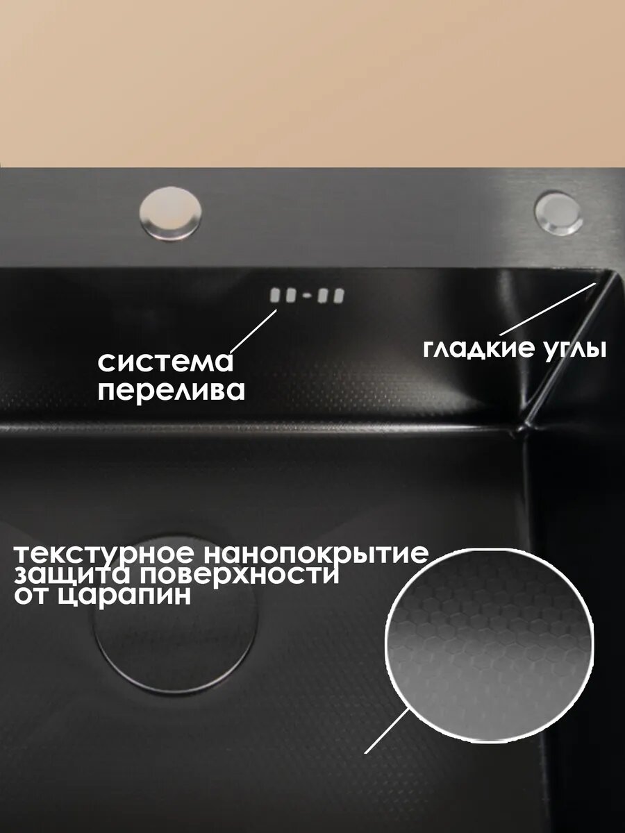 Мойка для кухни STATUS, нержавеющая сталь, 50х50 черная, врезная интересное: