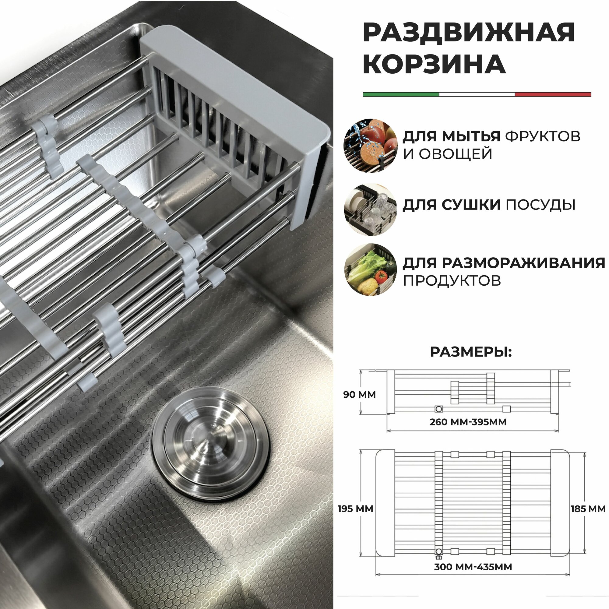 Купить Мойка кухонная GRASI "набор" с сушкой и дозатором 50х50, нержавеющая сталь с PVD покрытием, серебро