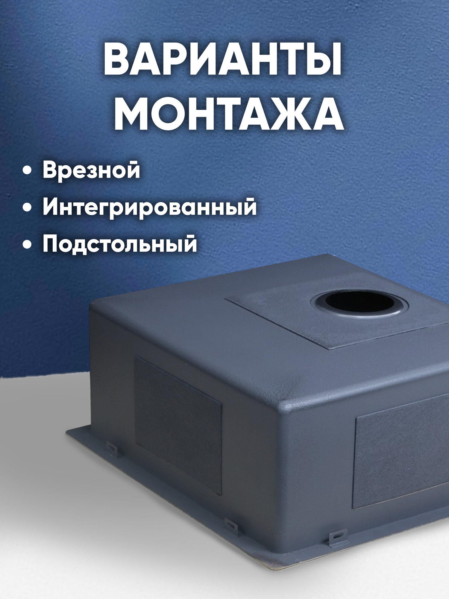 Купить Мойка для кухни врезная 500 x 500 x 200, квадратной формы, из нержавеющей стали, с сифоном