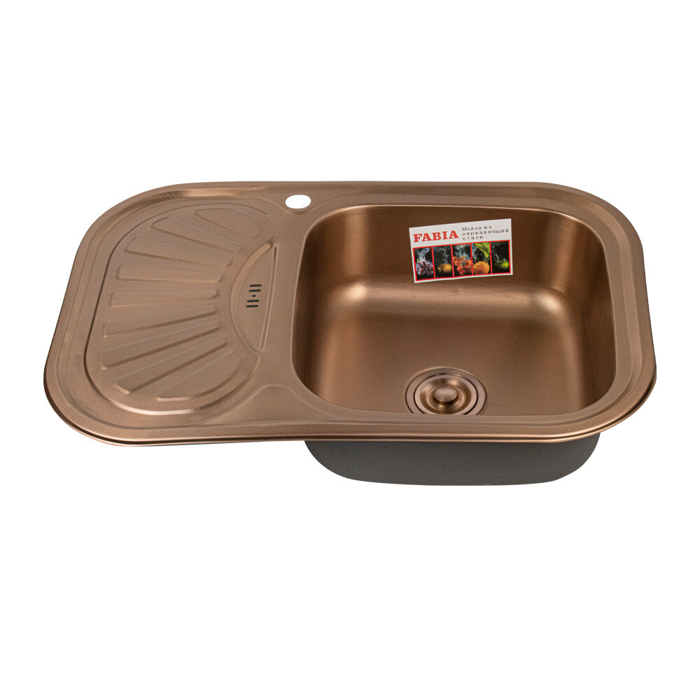 Купить Мойка кухонная FABIA врезная, 75х49, глубина 180 мм, большой сифон с переливом