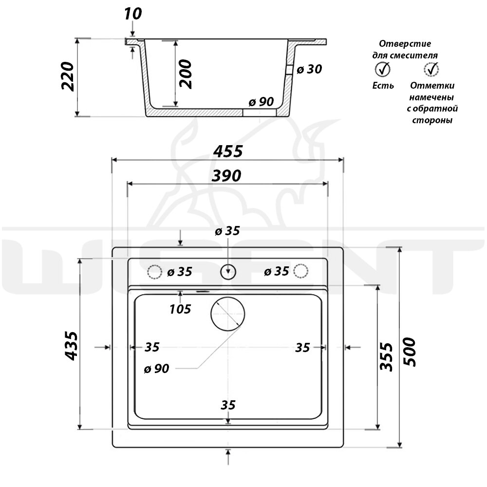 Мойка для кухни Gerhans A45 -25 Оникс (Беларусь) 500ммх450 мм
