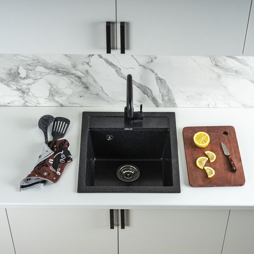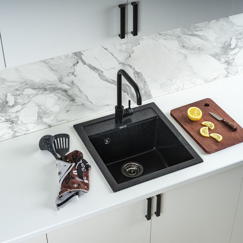 Комплект Мойка для кухни Gerhans A45-22 черный (беларусь) со смесителем W4998-3-22