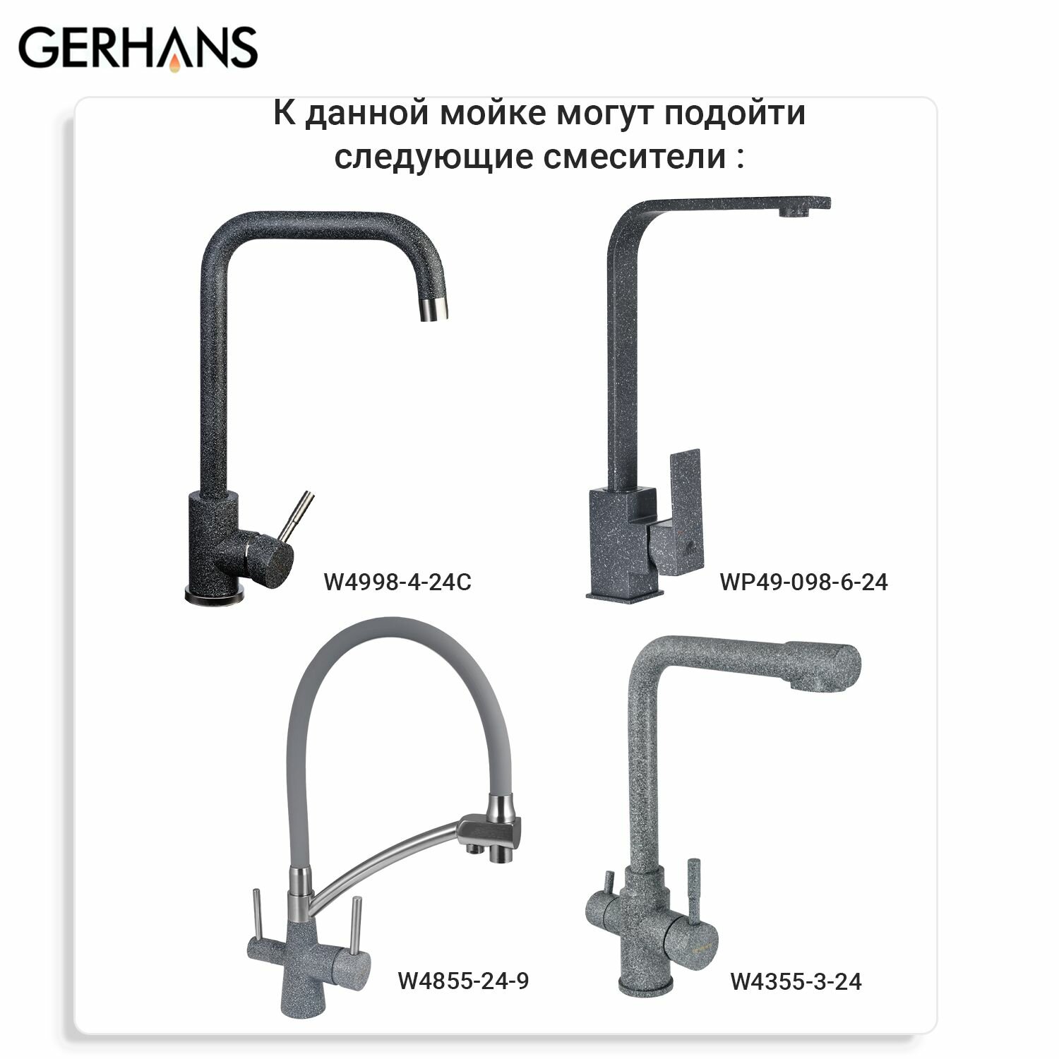 Комплект Мойка для кухни Gerhans A45-25 Оникс (Беларусь) со смесителем W4998-3-25