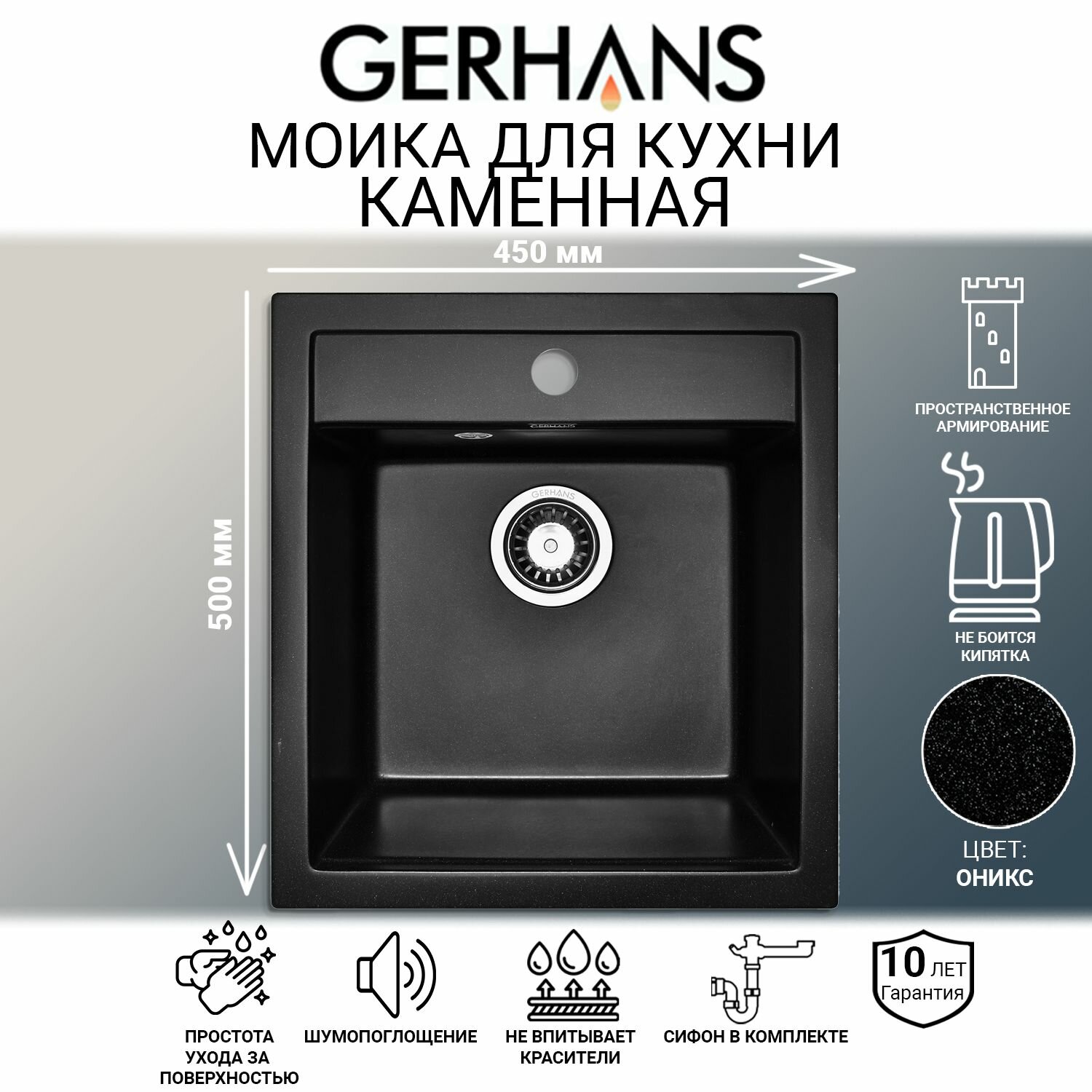 Купить Мойка для кухни Gerhans A45 -25 Оникс (Беларусь) 500ммх450 мм