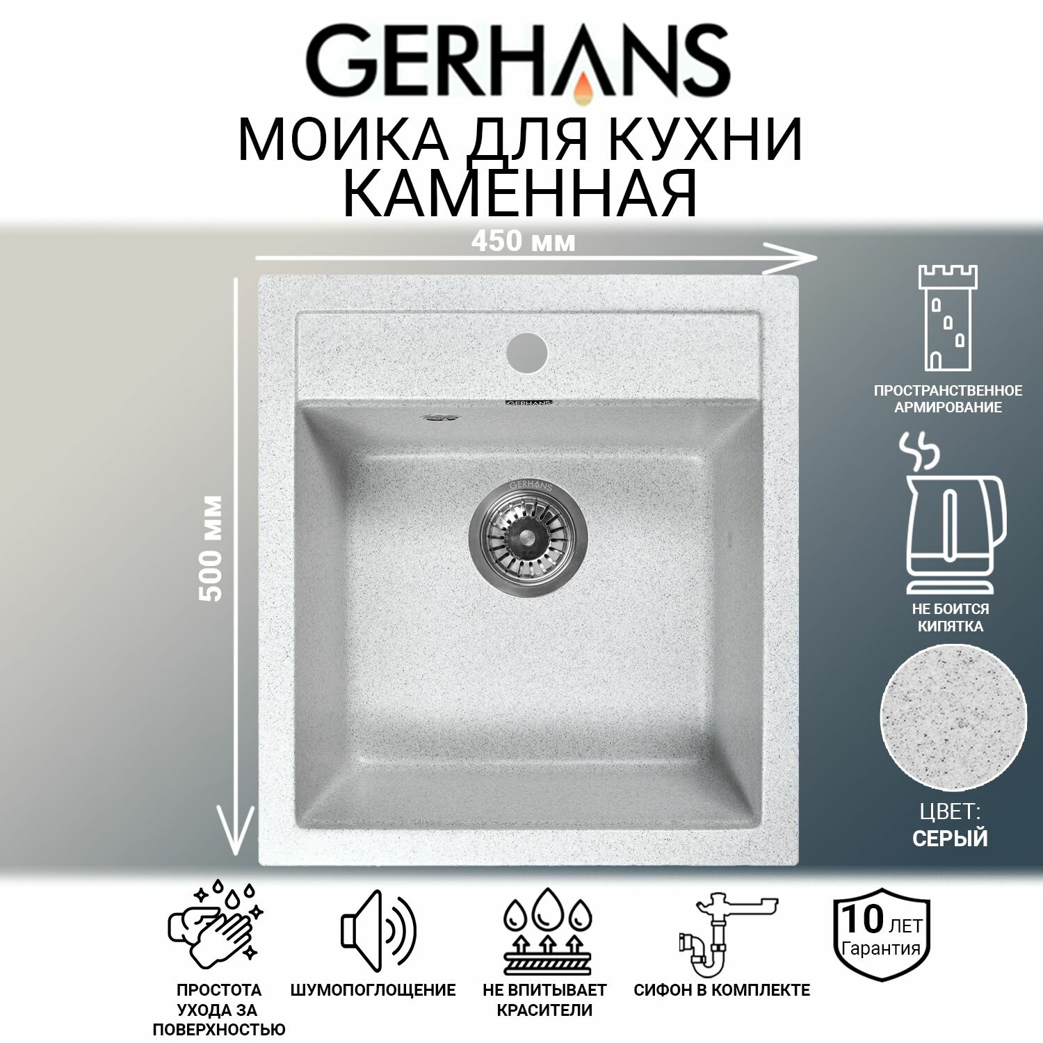 Купить Мойка для кухни Gerhans A45-19 Серый (Беларусь) 500ммх450 мм