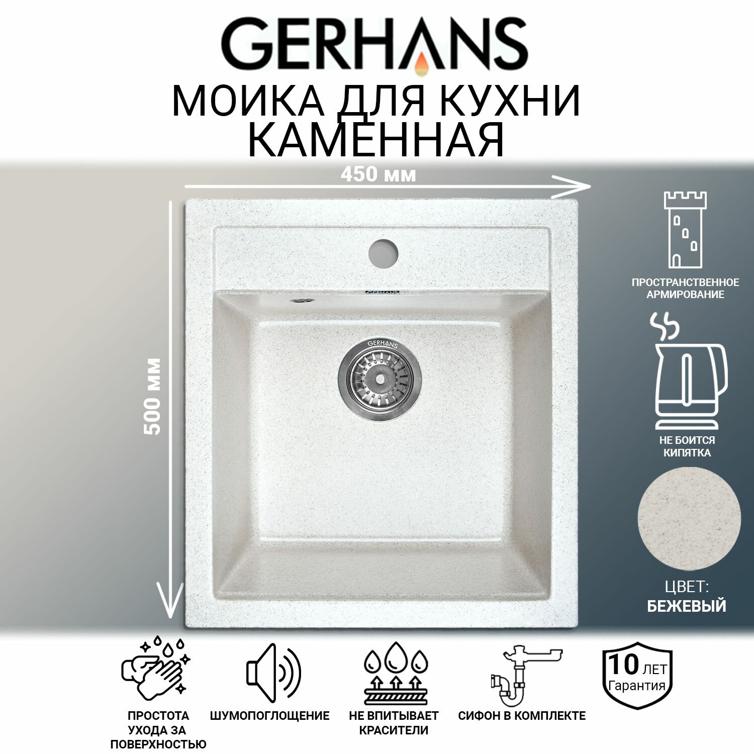 Мойка для кухни Gerhans A45-21 Песочный (Беларусь) 500ммх450 мм