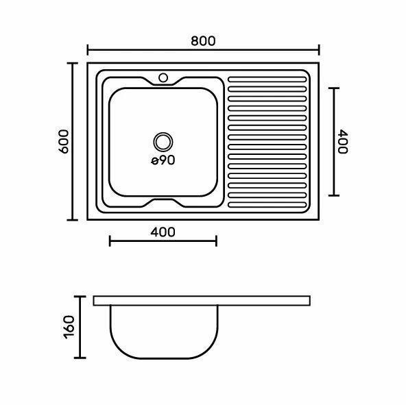 Купить Мойка кухонная FABIA накладная 80х60 см левая чаша толщина 0,6 мм глянцевая с сифоном