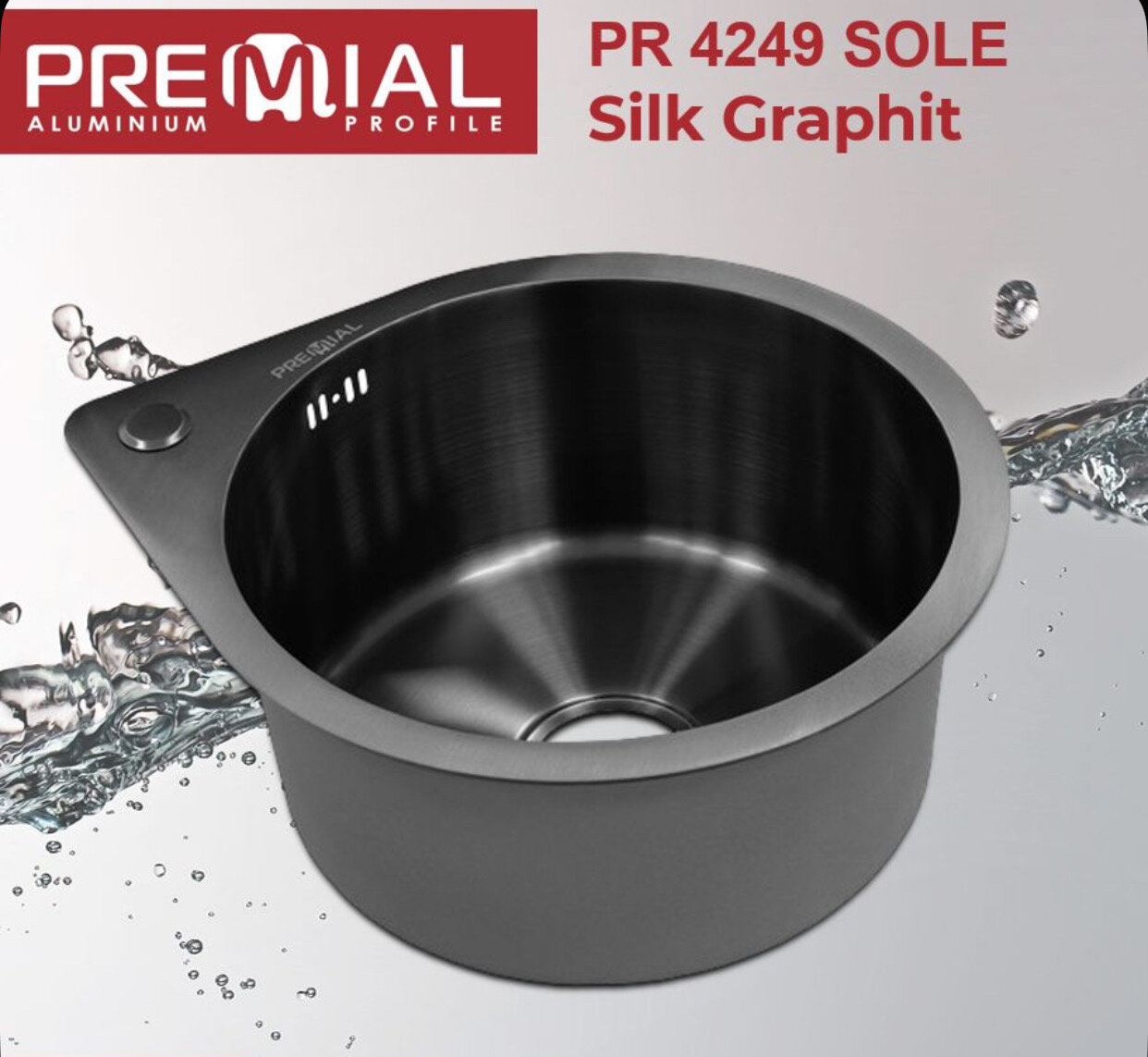 Купить Кухонная мойка Premial 420*496 мм Sole из нержавеющей стали 3 мм, каплевидной формы, цвет графит