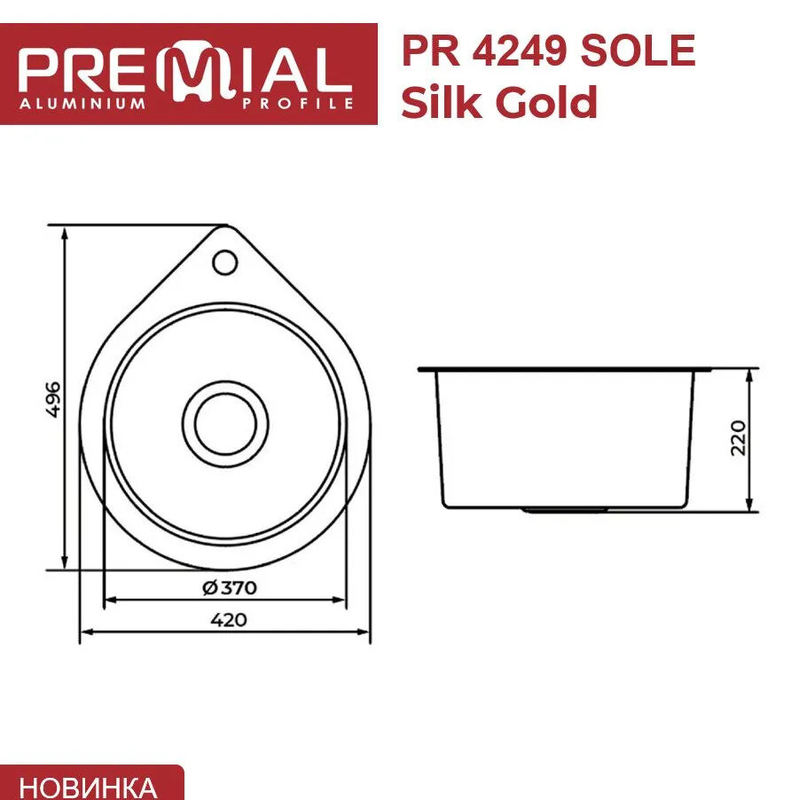 Кухонная мойка Premial 420*496 мм Sole из нержавеющей стали 3 мм, каплевидной формы, цвет графит интересное: