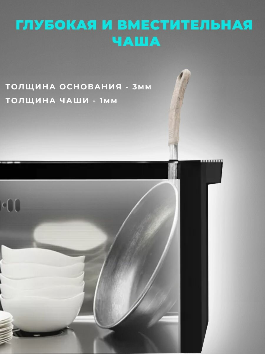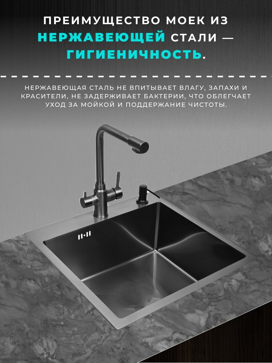 СохранитьМойка для кухни нержавеющая врезная 50*50 WISENT графит со смесителем, коландером и дозатором интересное: