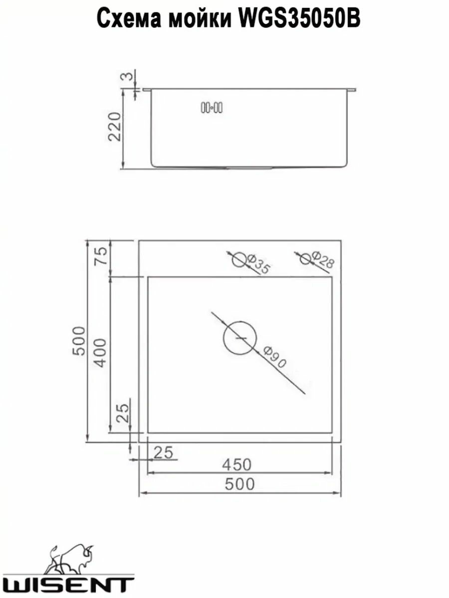 Мойка для кухни нержавеющая рифленая 50*50 с PVD покрытием с итальянским сифоном Wisent WGS35050BD