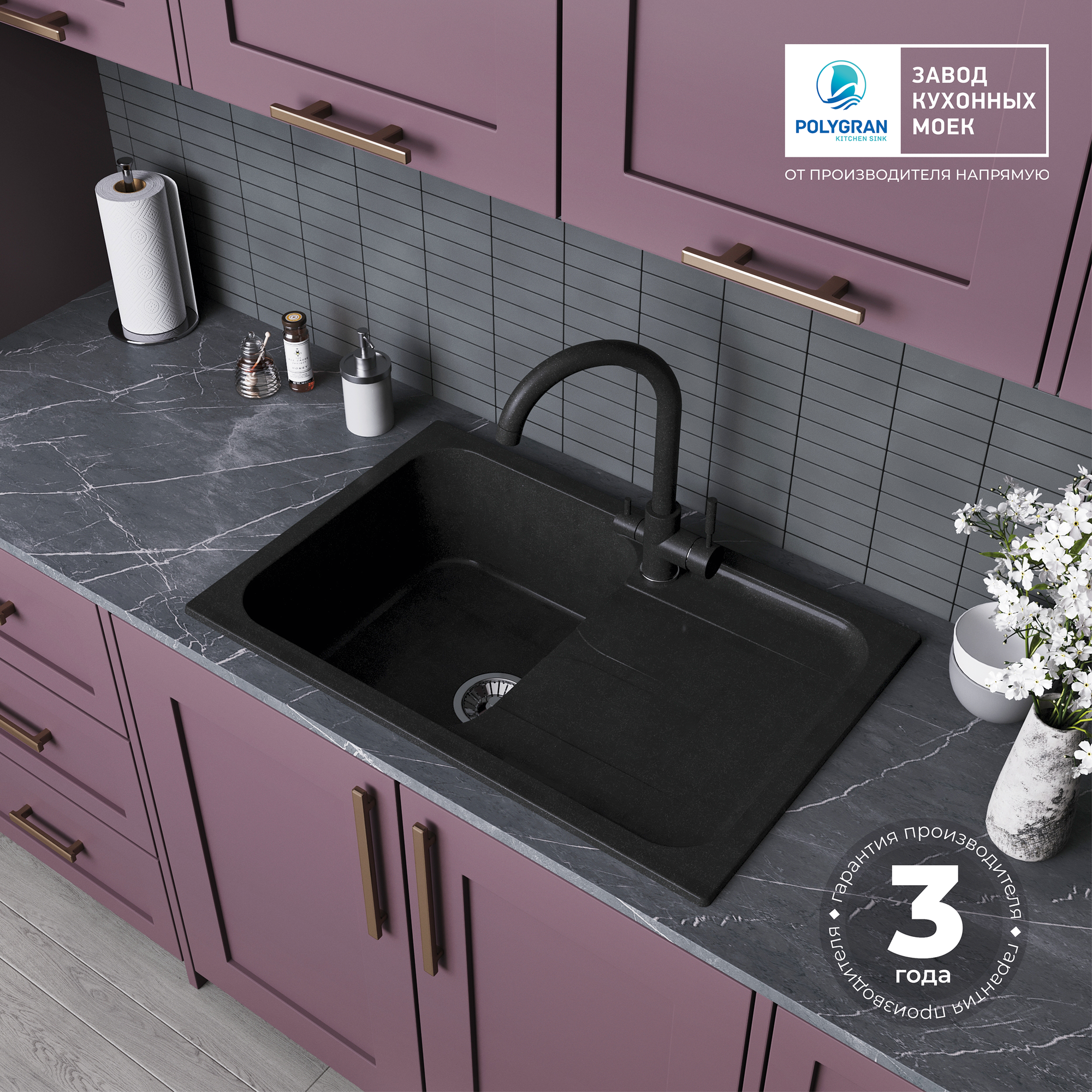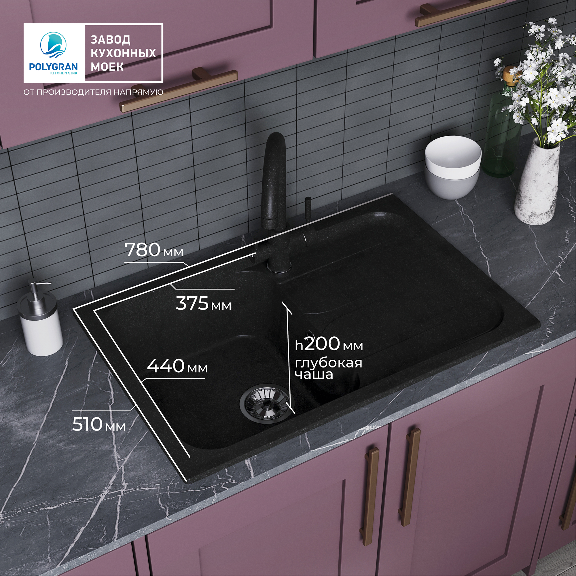 Мойка для кухни каменная POLYGRAN ALTO-780, Черная, Врезная, Квадратная, С крылом (Космос) интересное: