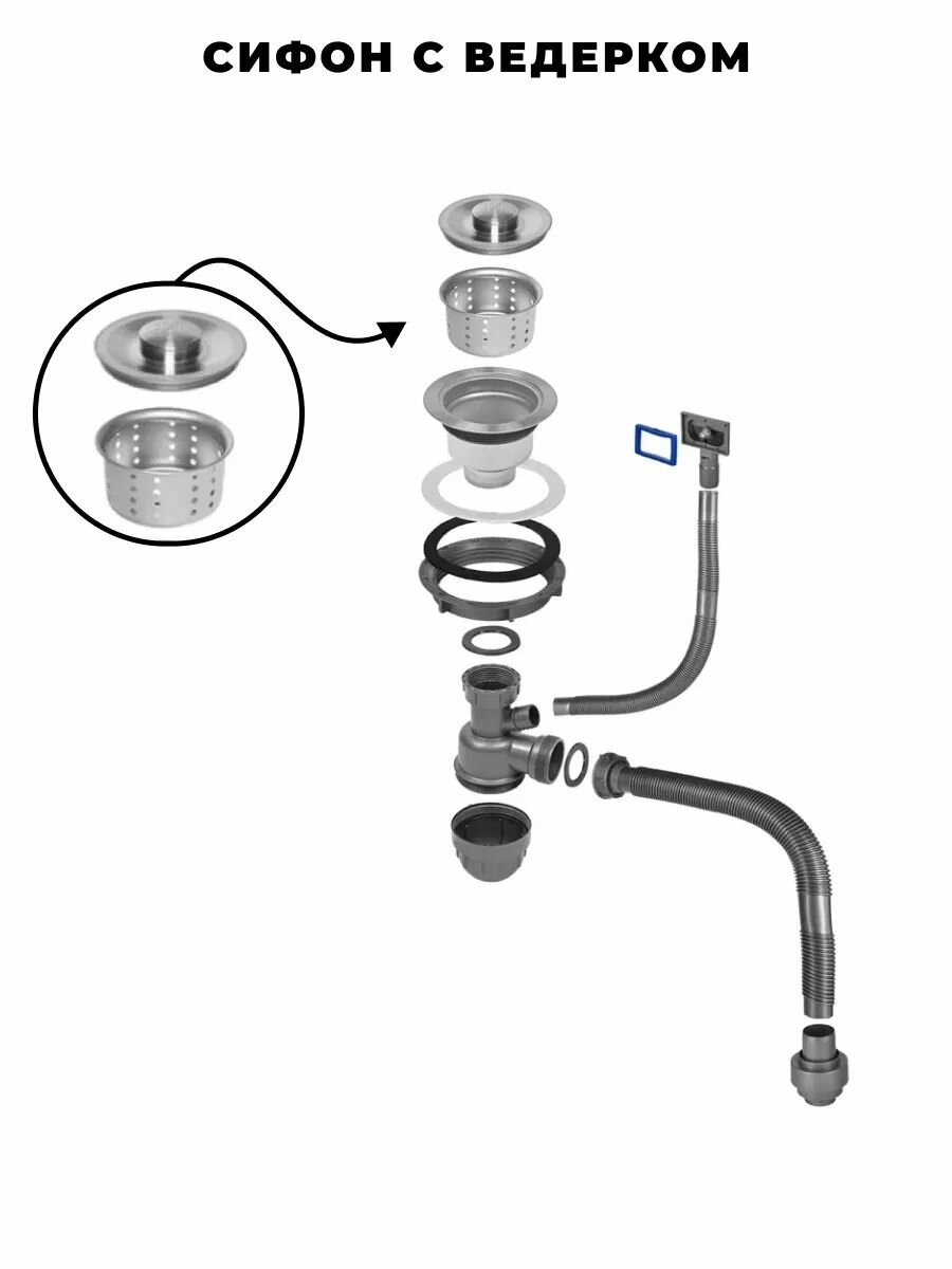 Набор кухонная мойка из нерж. стали WISENT WS37851B-L с PVD покр. с коланд, доз, сиф. W02-114B