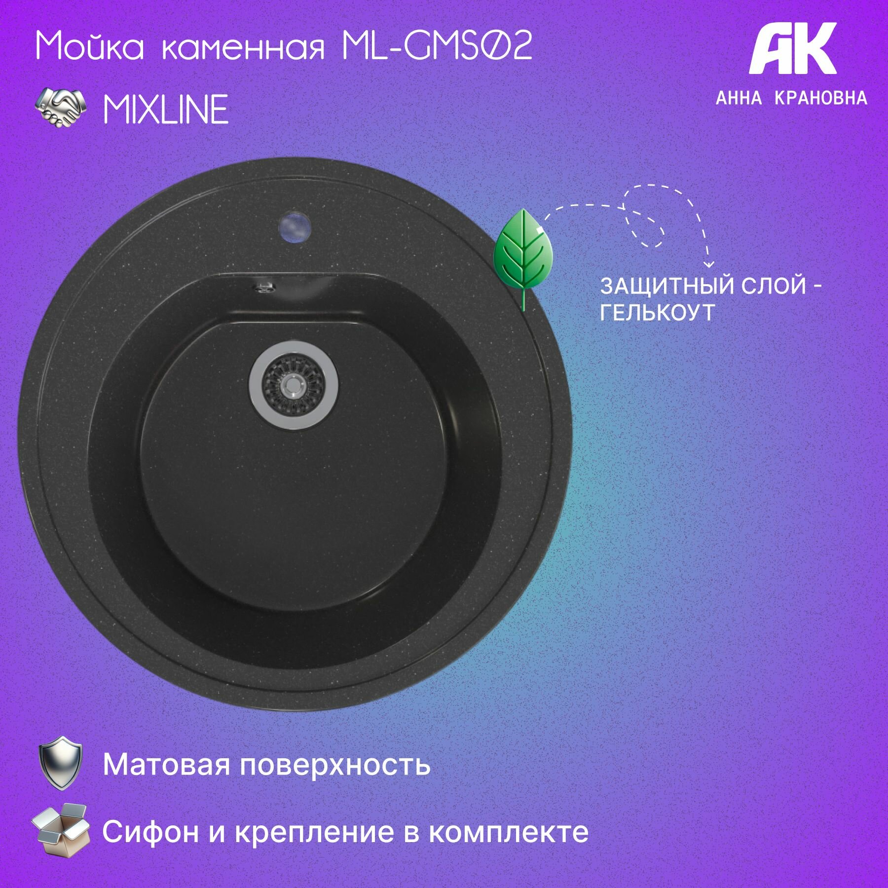 Кухонная мойка, каменная MIXLINE ML-GMS02 D50.5, черная интересное: