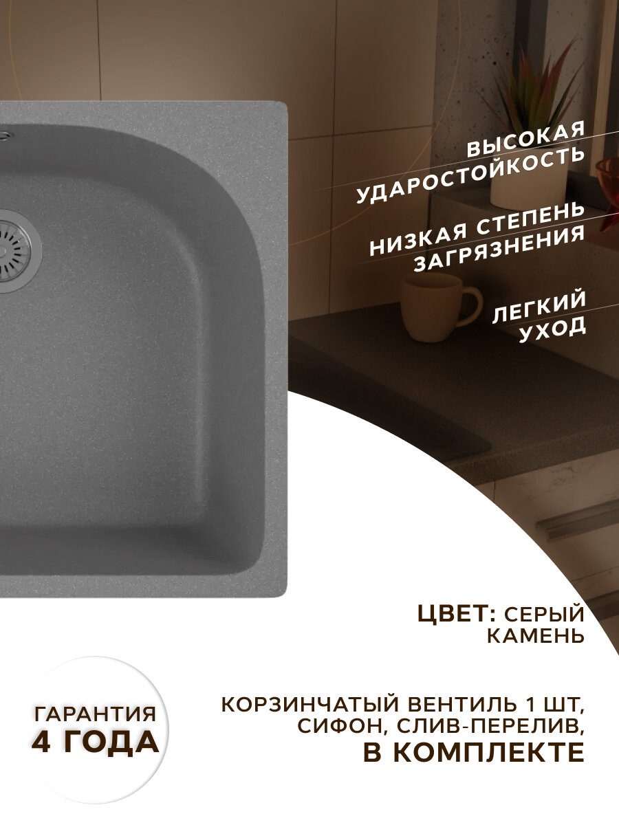 Мойка для кухни BAU Mif Gray stone 59х51, выпуск с сифоном в комплекте, серый камень интересное:
