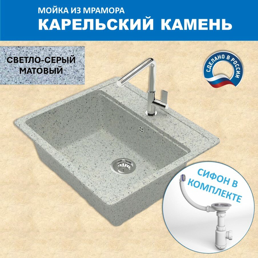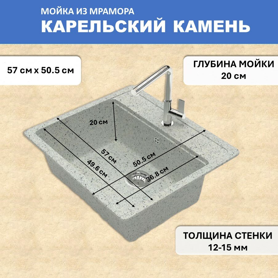 Кухонная мойка Карельский камень модель 9 (570*505) Q10 Cветло-серый интересное: