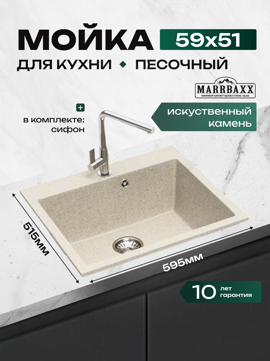 СохранитьМойка для кухни из искусственного камня Marrbaxx матовая Кариба 44Q5 Цвет песочный. интересное:
