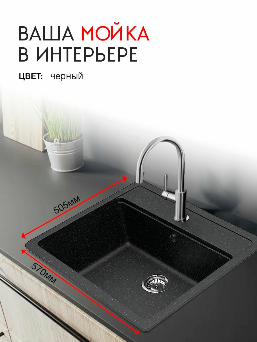 СохранитьМойка для кухни из искусственного камня Marrbaxx матовая Джеки 9Q4 Цвет черный. интересное: