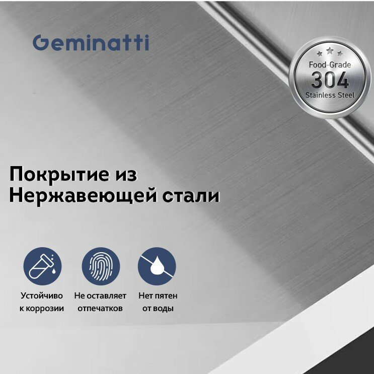 СохранитьМойка Geminatti / Для кухни / Размер 50x50х21 см / Нержавеющая сталь / Цвет атласный / Толщина чаши 1 мм, основания 3 мм интересное: