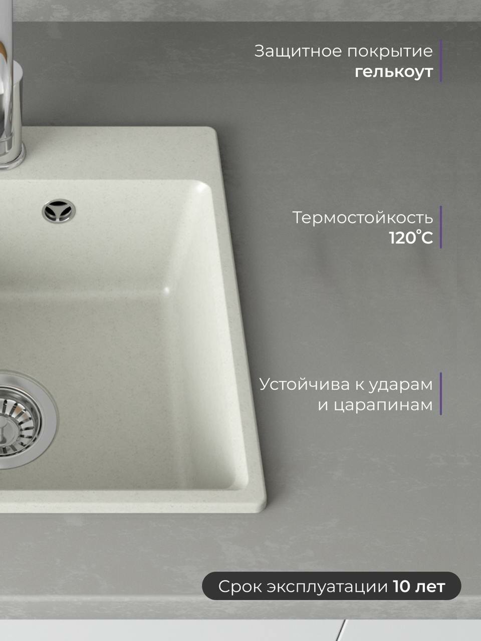 Мойка для кухни каменная квадратная врезная NOVA 44-44 белый интересное: