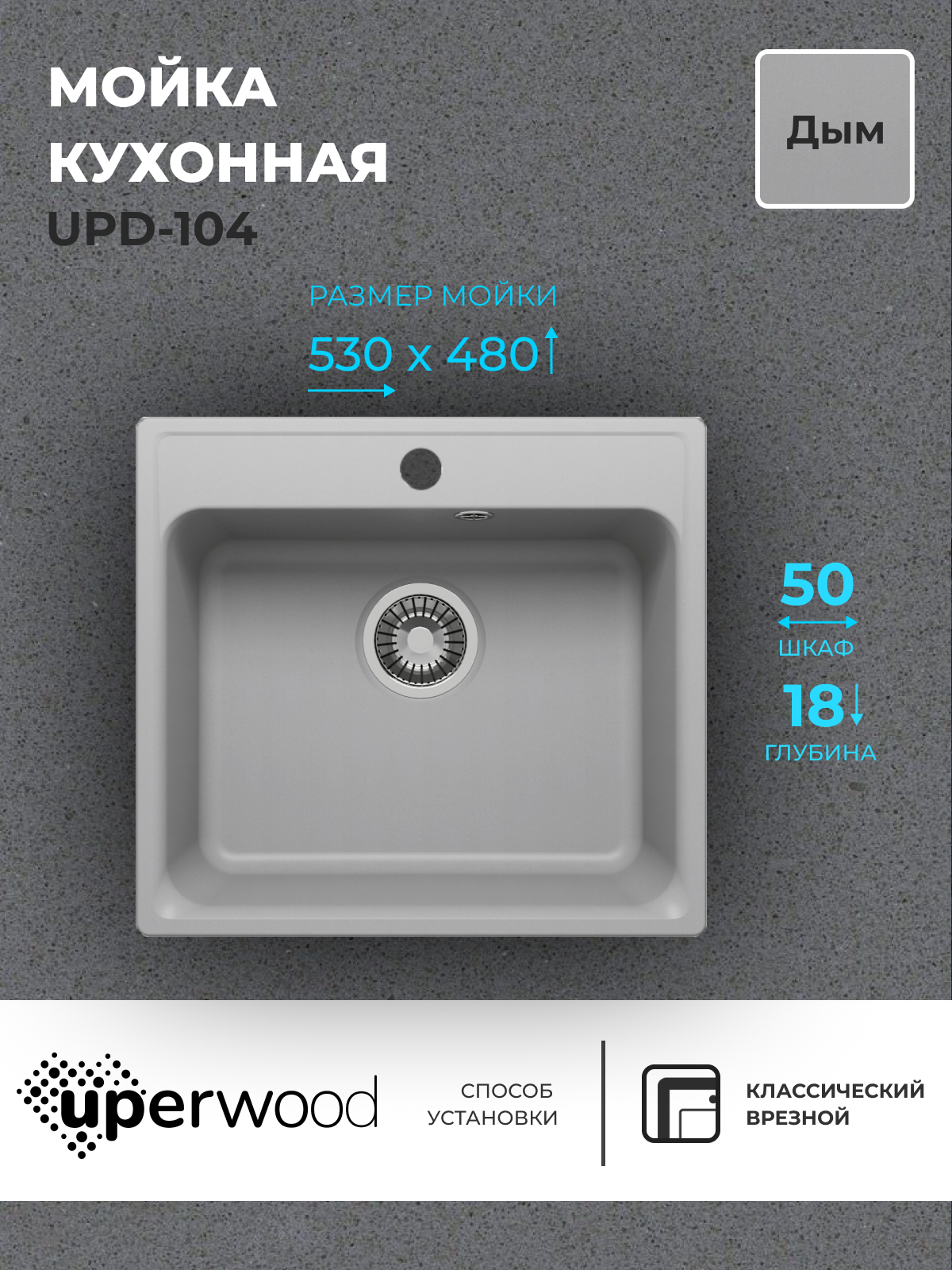 Кухонная мойка из искусственного камня Uperwood UPD-104, прямоугольная, цвет дым интересное: