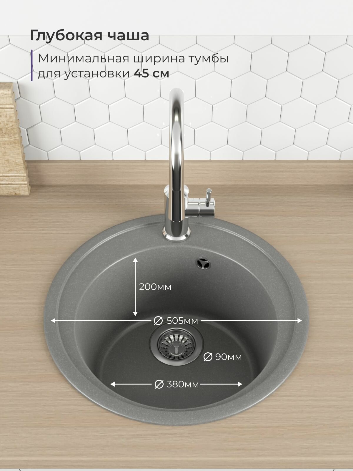 Мойка для кухни каменная, искусственный камень, кварц круглая врезная NOVA 51 К серый, матовая интересное: