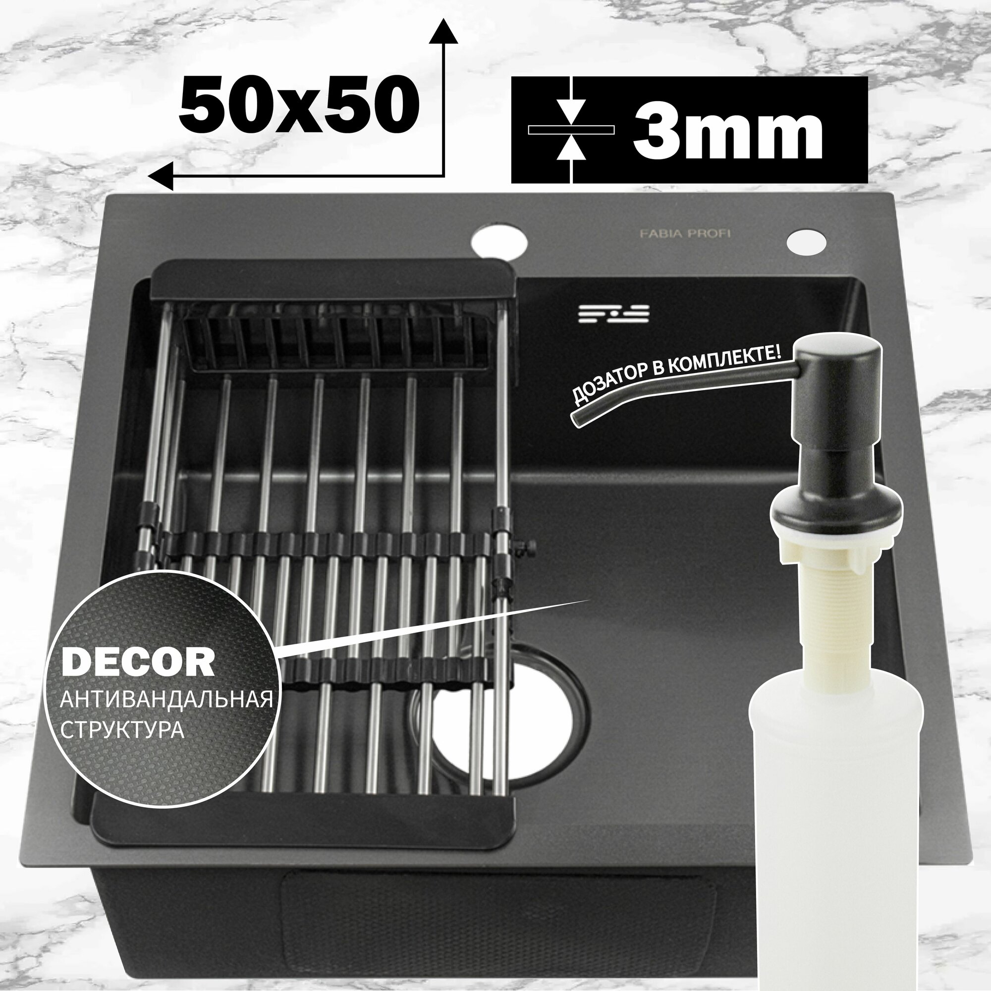 Мойка FABIA Profi 50503DG графит врезная для кухни 50х50 см, Раковина из нержавеющей стали с дозатором интересное: