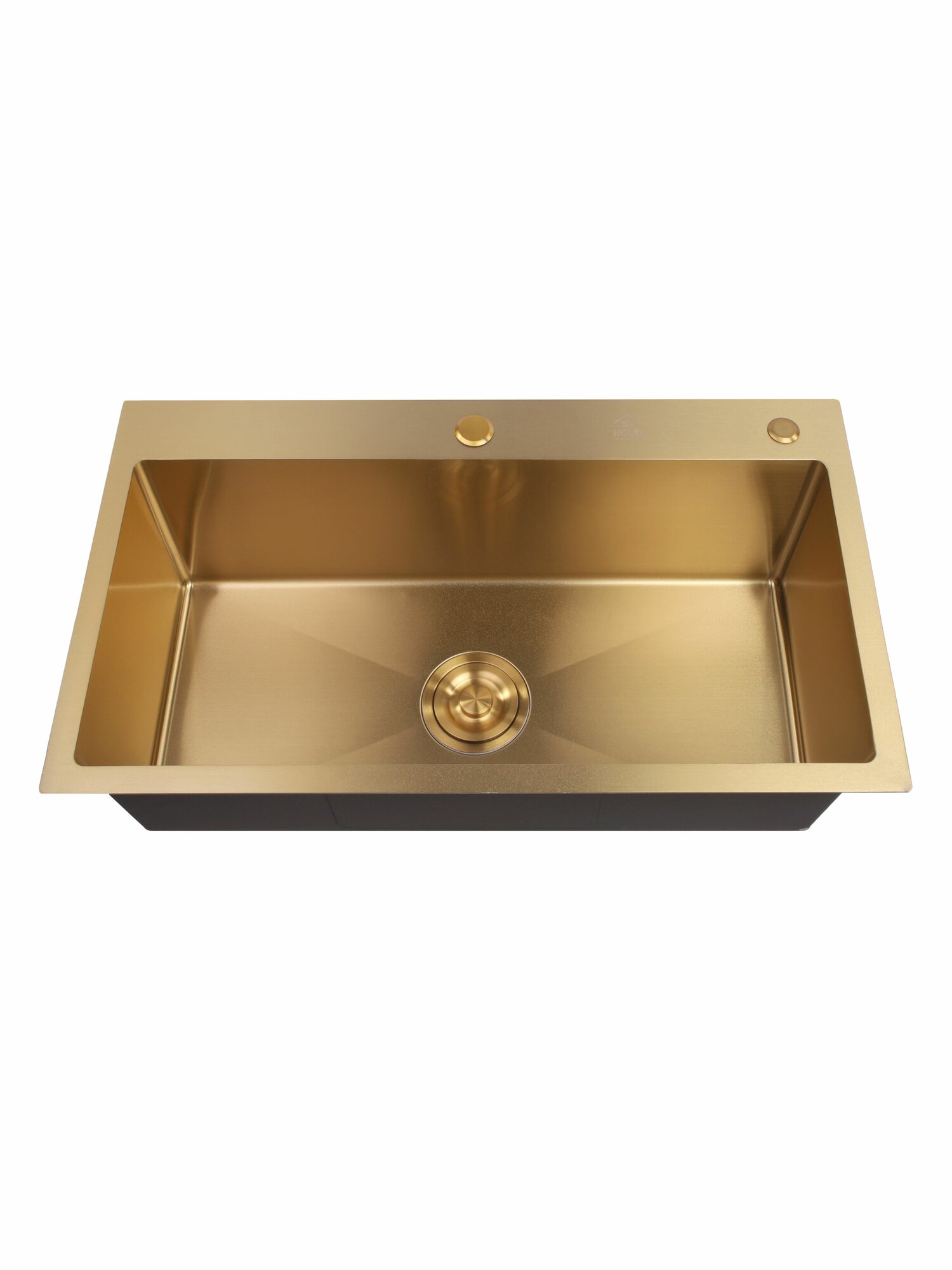 Мойка врезная Big House 72х40 см, толщина 3,0х0,8 мм, глубина 215 мм, цвет Золото, сифон с переливом