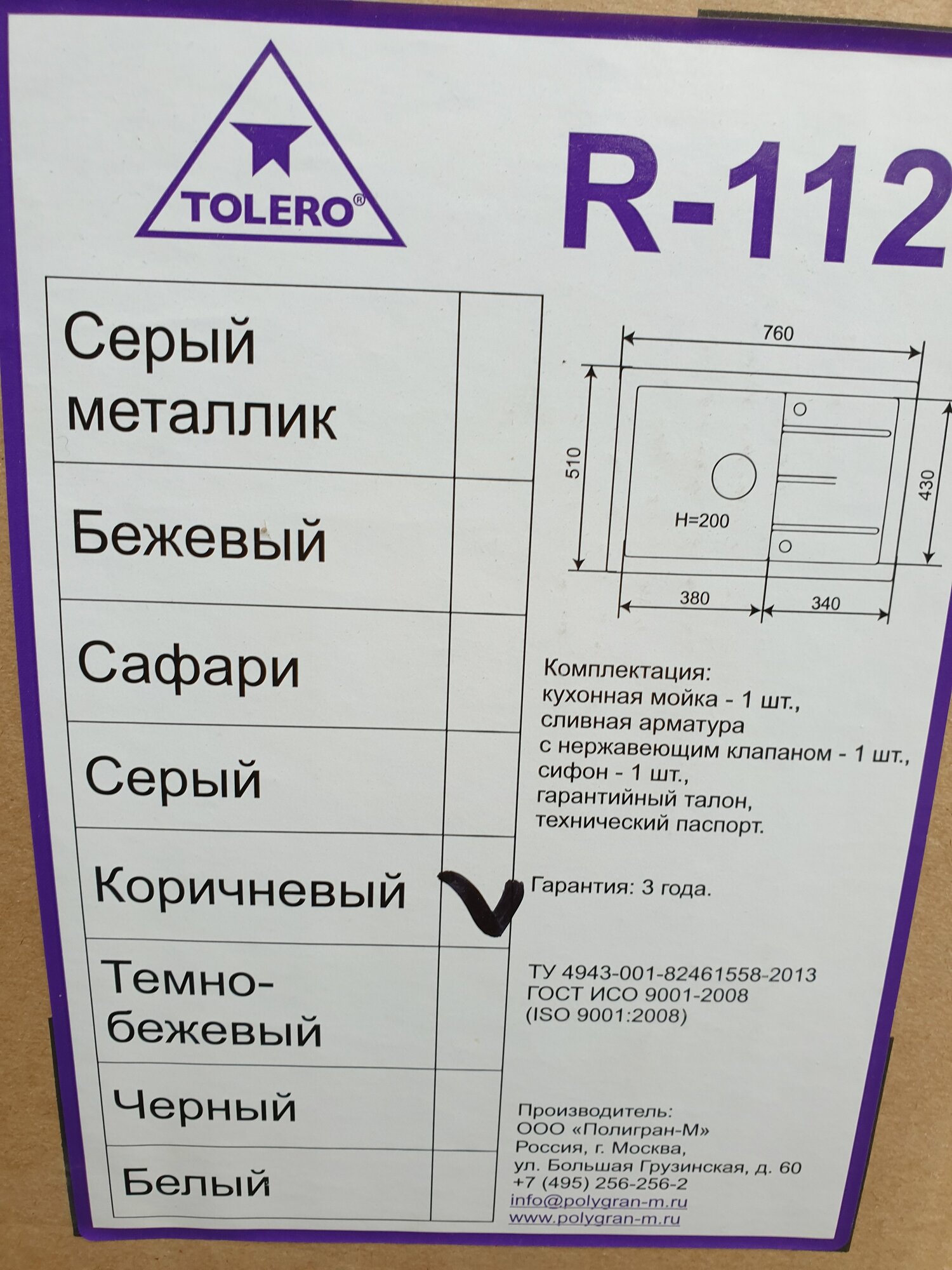 Мойка кухонная TOLERO R-112, коричневая (№817), врезная, кварц, 50х76см интересное: