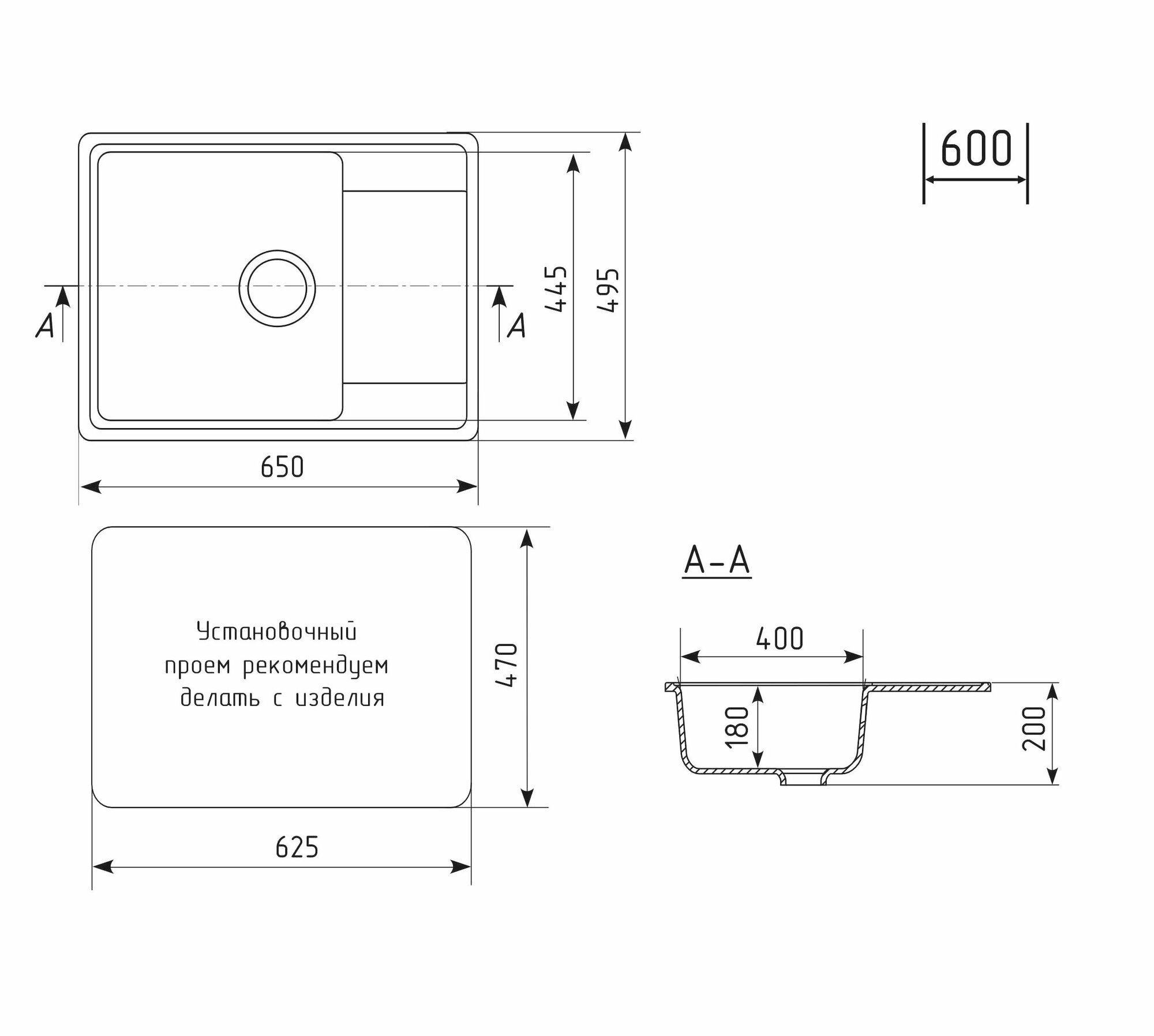 Кухонная мойка из искусственного камня Uperwood ECON UPD-202-004, прямоугольная, черная матовая