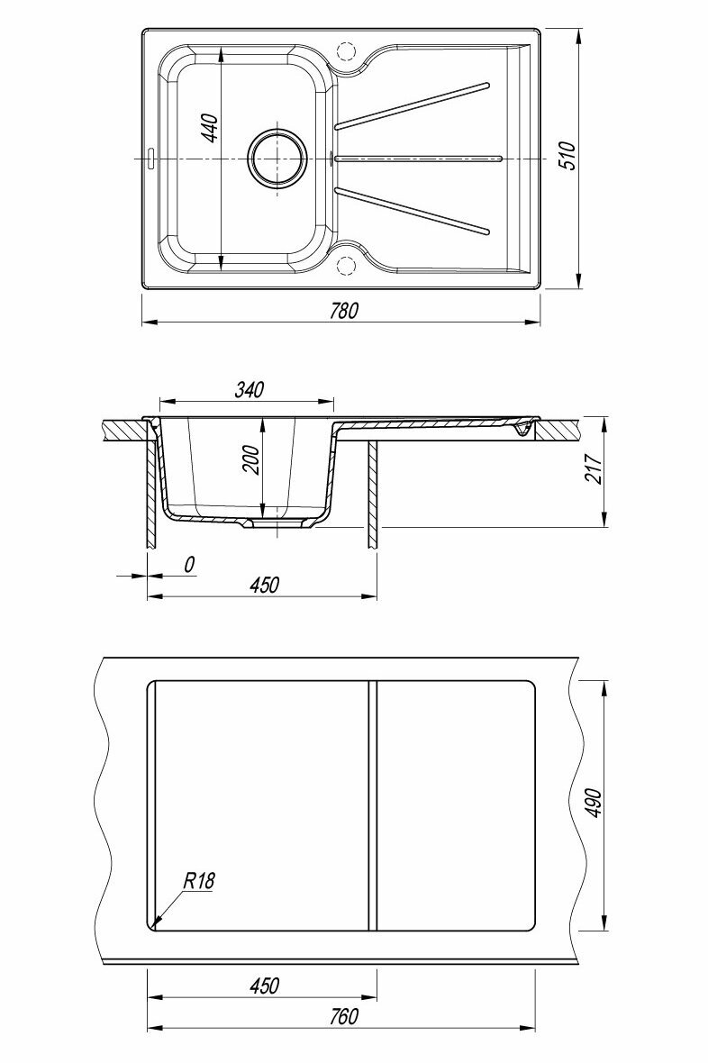 Кухонная мойка кварцевая Uperwood Quartz UPD-04-03, прямоугольная, серая интересное: