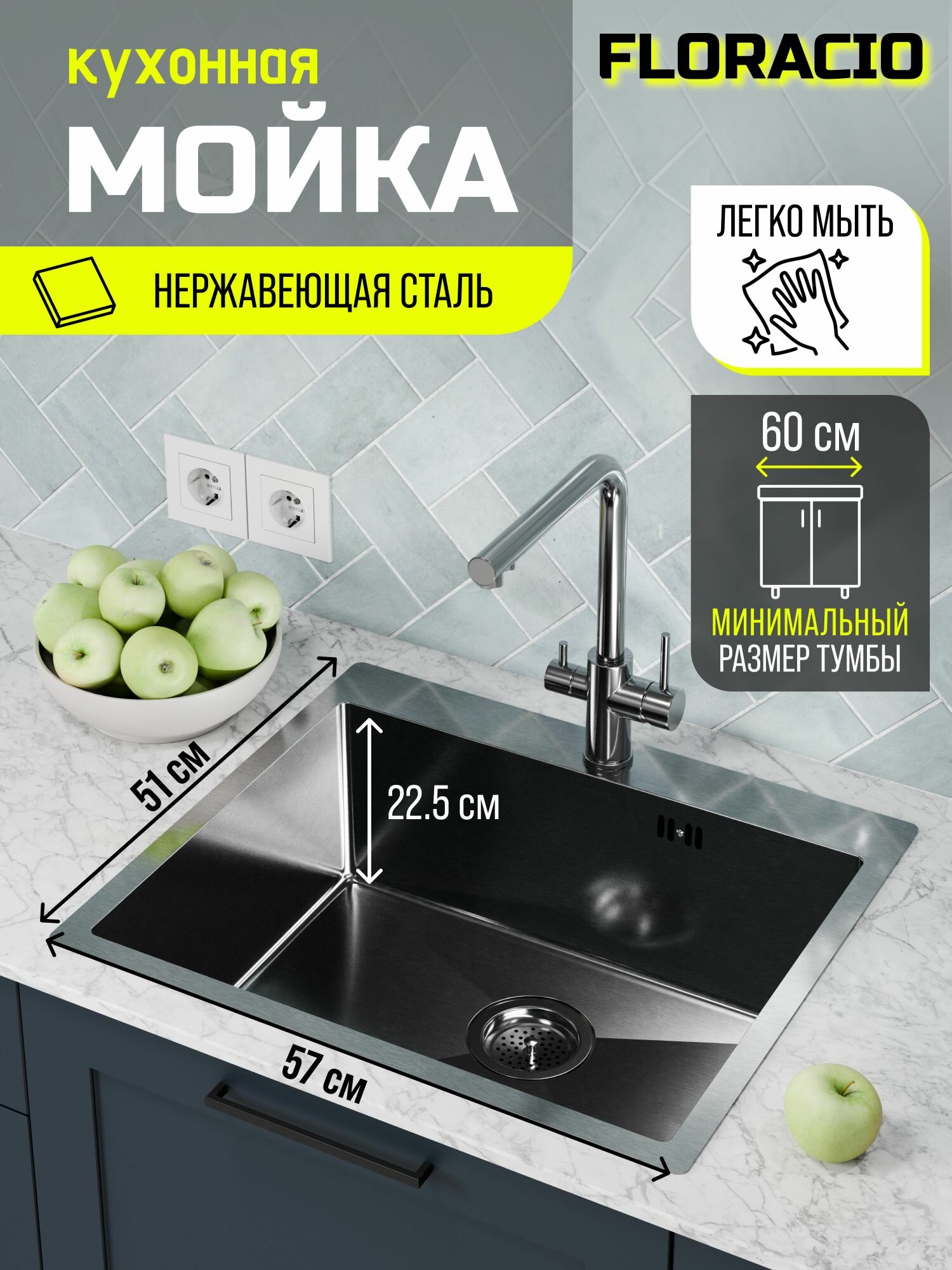 Кухонная мойка FLORACIO Steel F.5751. GM, вороненая сталь интересное: