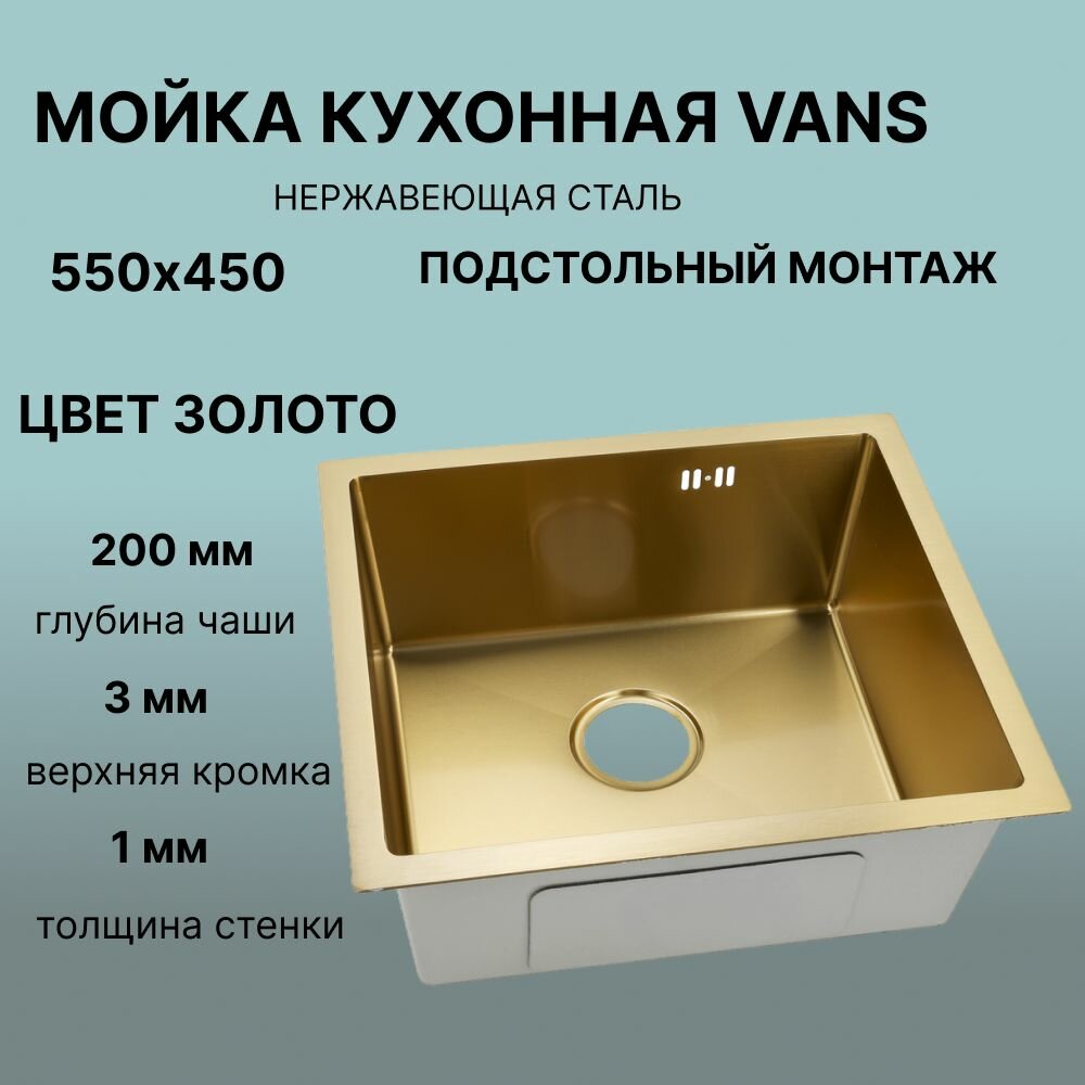 Мойка для кухни нержавеющая подстольного монтажа VANS UTM 55*45 см, цвет Gold интересное: