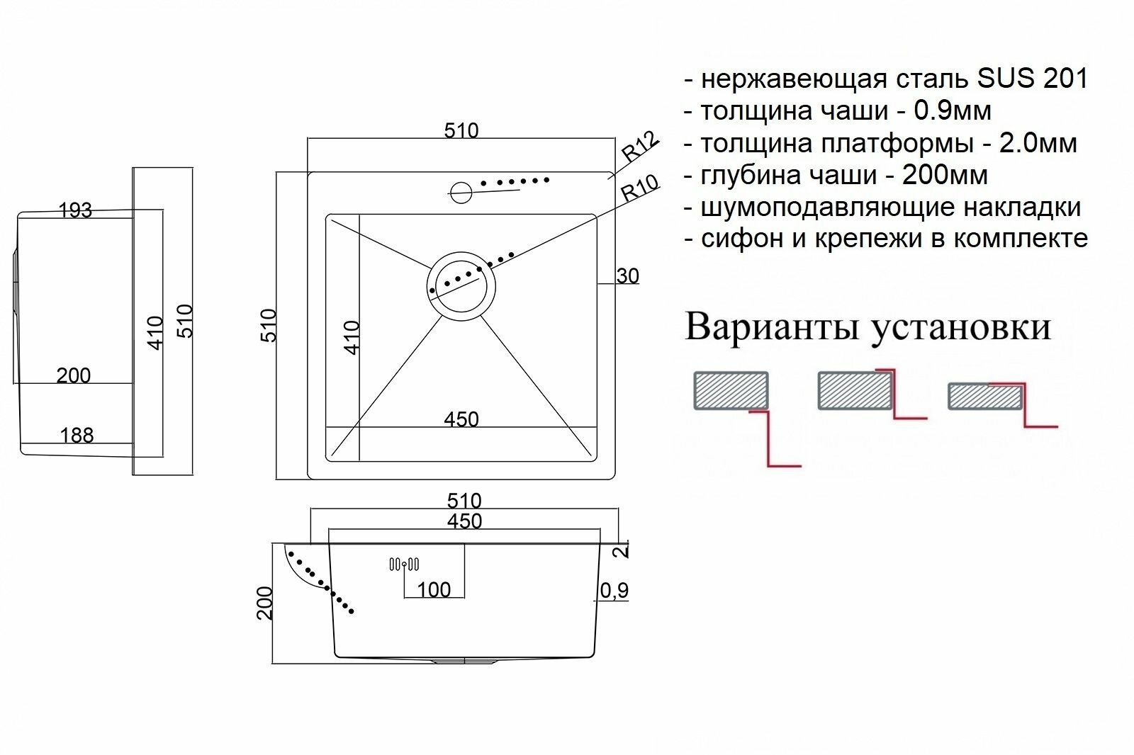 Мойка кухонная ZorG SH 5151 с накладкой, интегрированная / врезная / подстольная, матовая нержавеющая сталь интересное: