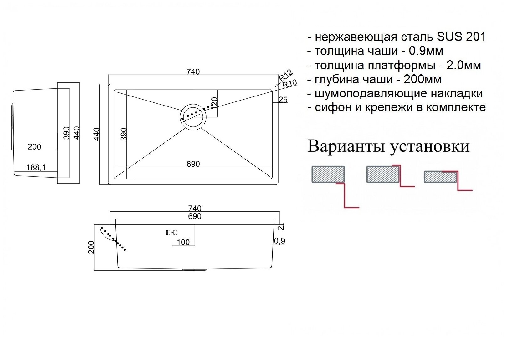 Мойка кухонная ZorG серия STEEL HAMMER SH 7444 GRAFIT графит черная, большая чаша, с сифоном интересное: