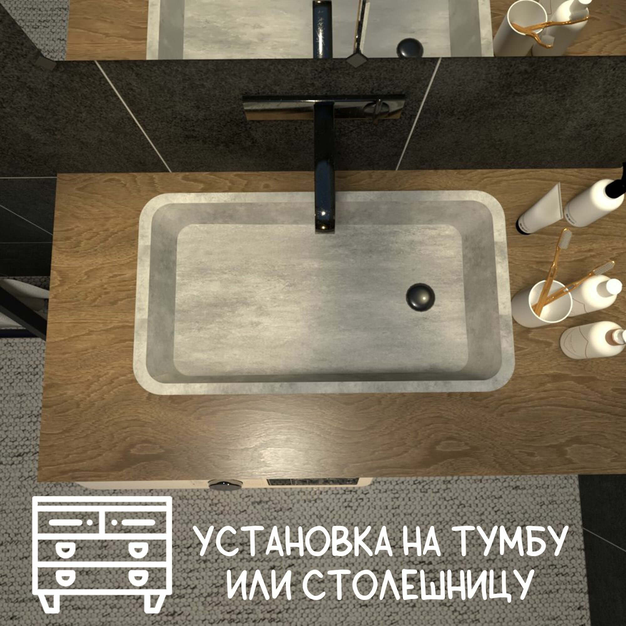 Бетонная мини-раковина, квадратная, серая, 25×25×11 см, накладная, из бетона, лофт, современная, маленькая мини раковина