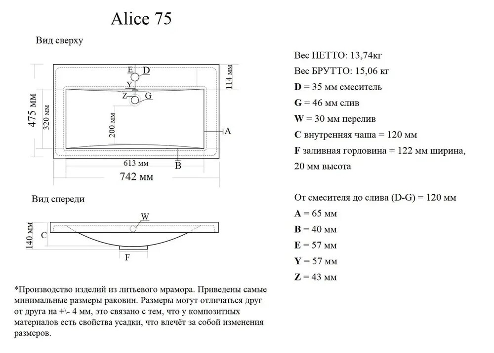 Раковина Madera Alice 75 интересное: