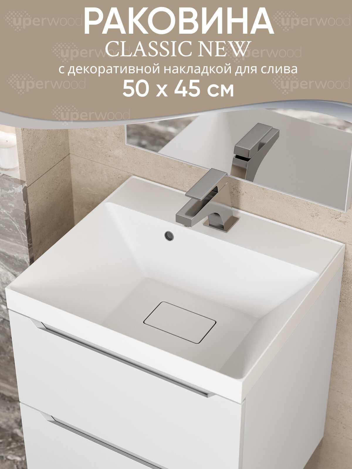Раковина для ванной 50 см, Uperwood Classic New, белая глянцевая, с накладкой для слива интересное: