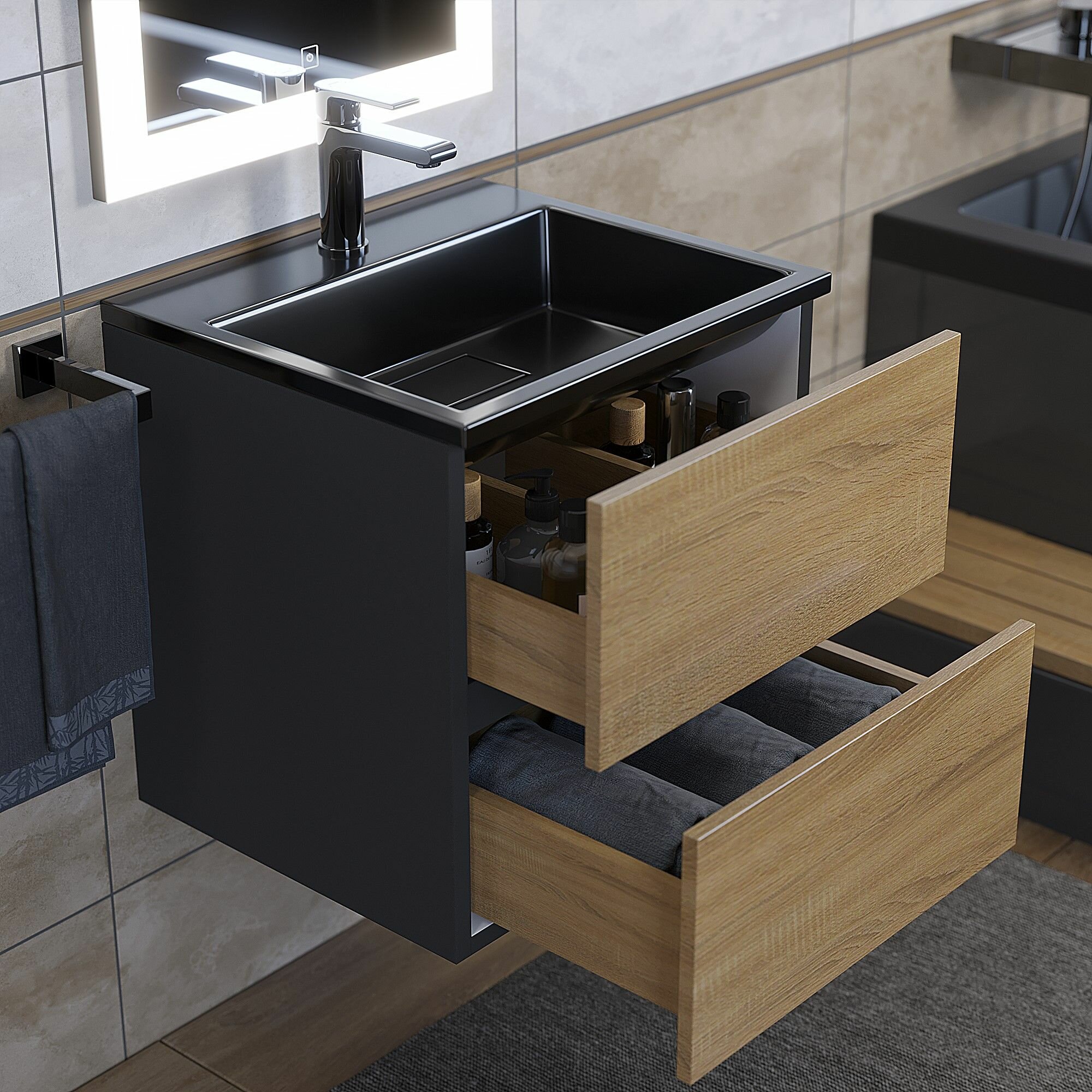 Раковина для ванной Uperwood Barsa 70х45х14,5 см, черная глянцевая