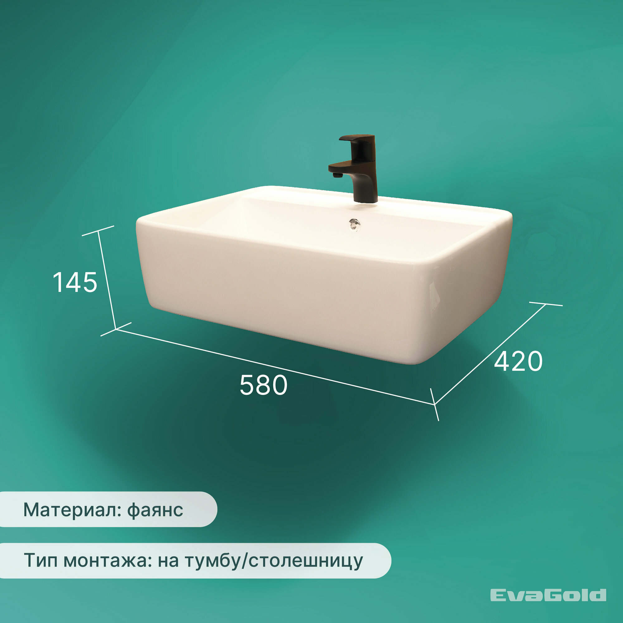 Раковина для ванной накладная EvaGold 580*420*145 мм, модель ND601.32 белый интересное: