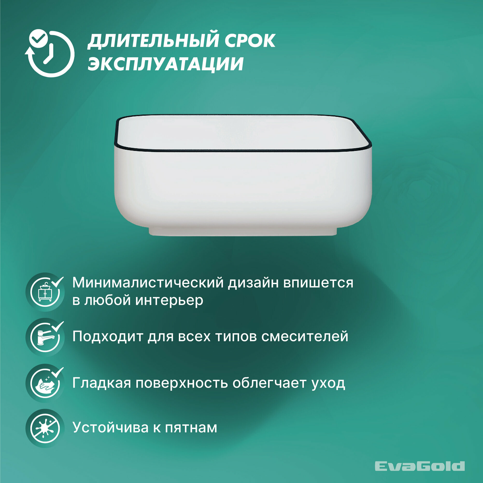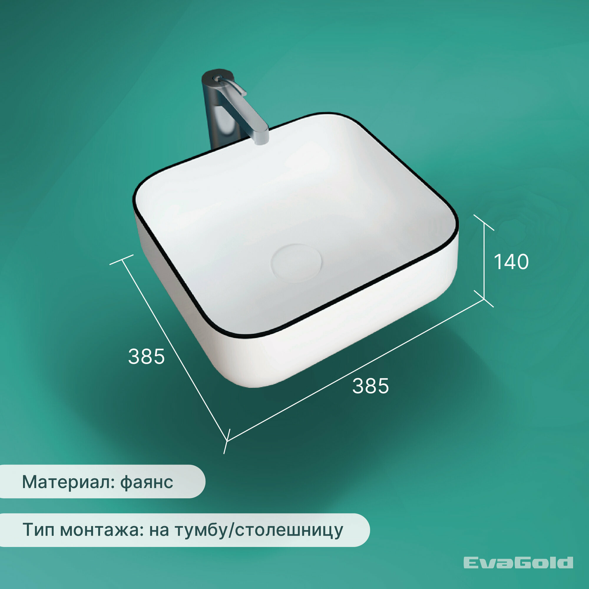 Раковина для ванной накладная EvaGold 385*385*140 мм, модель ND601.19 белый/черный интересное: