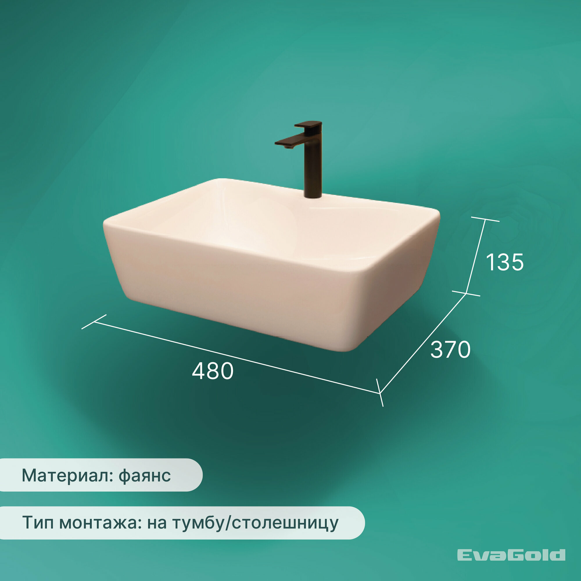 Раковина для ванной накладная EvaGold 480*370*135мм, модель ND601.8 белый интересное: