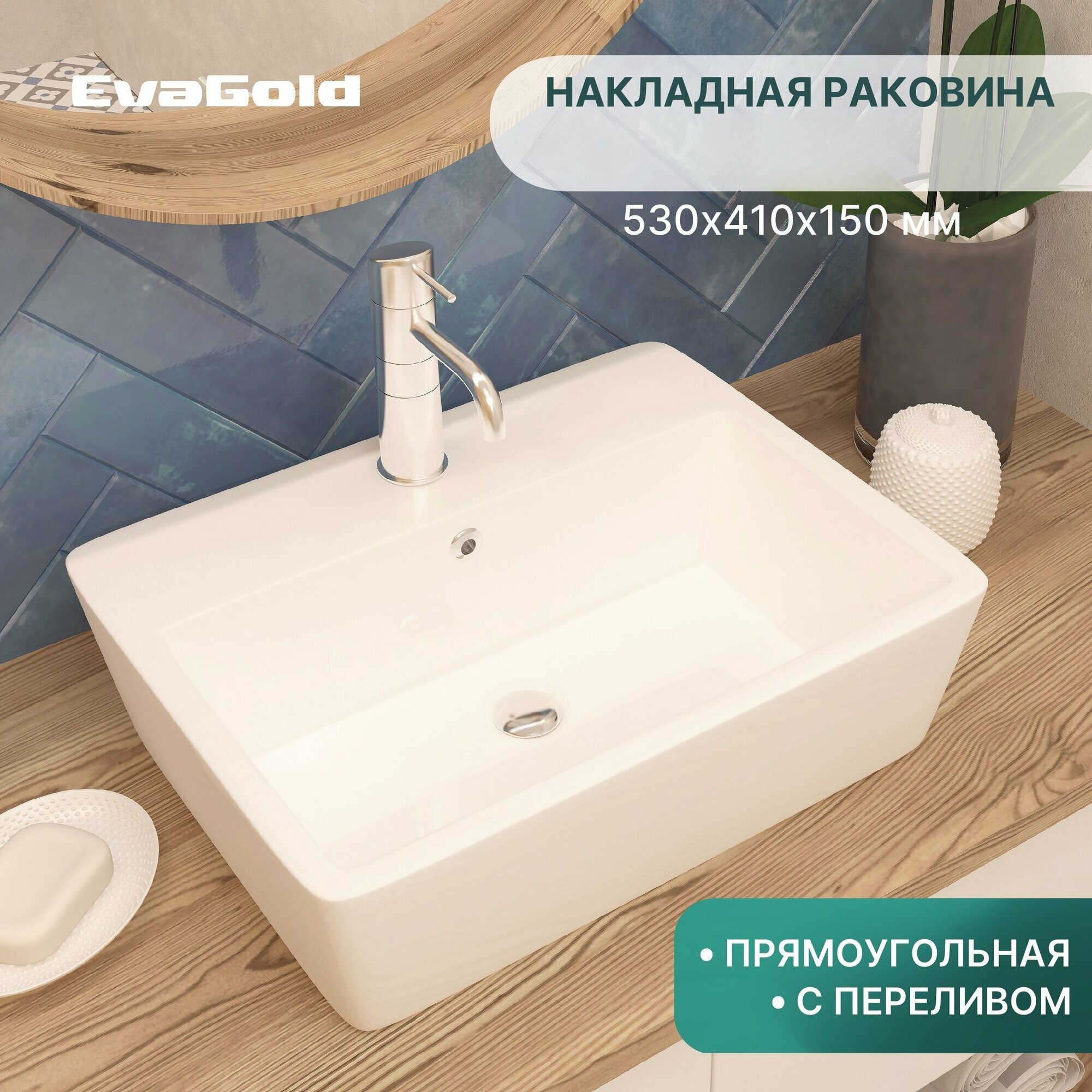 Раковина для ванной накладная EvaGold 530*410*150 мм, модель ND601.30 белый интересное: