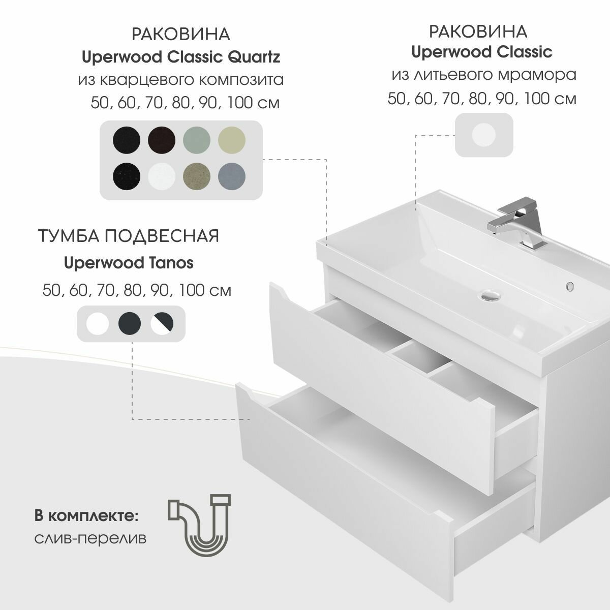 Раковина для ванной Uperwood Classic 80х45х15 см, белая глянцевая интересное: