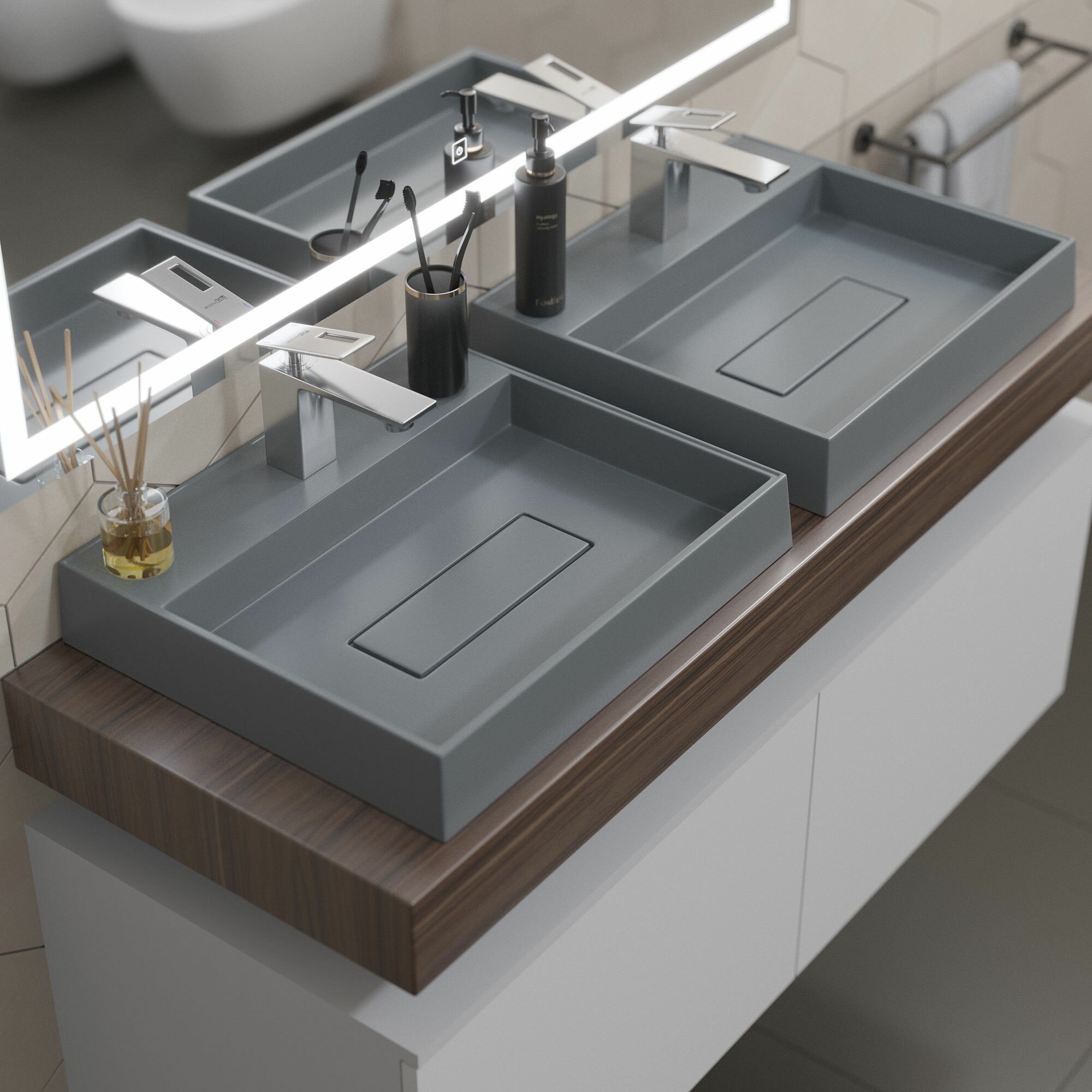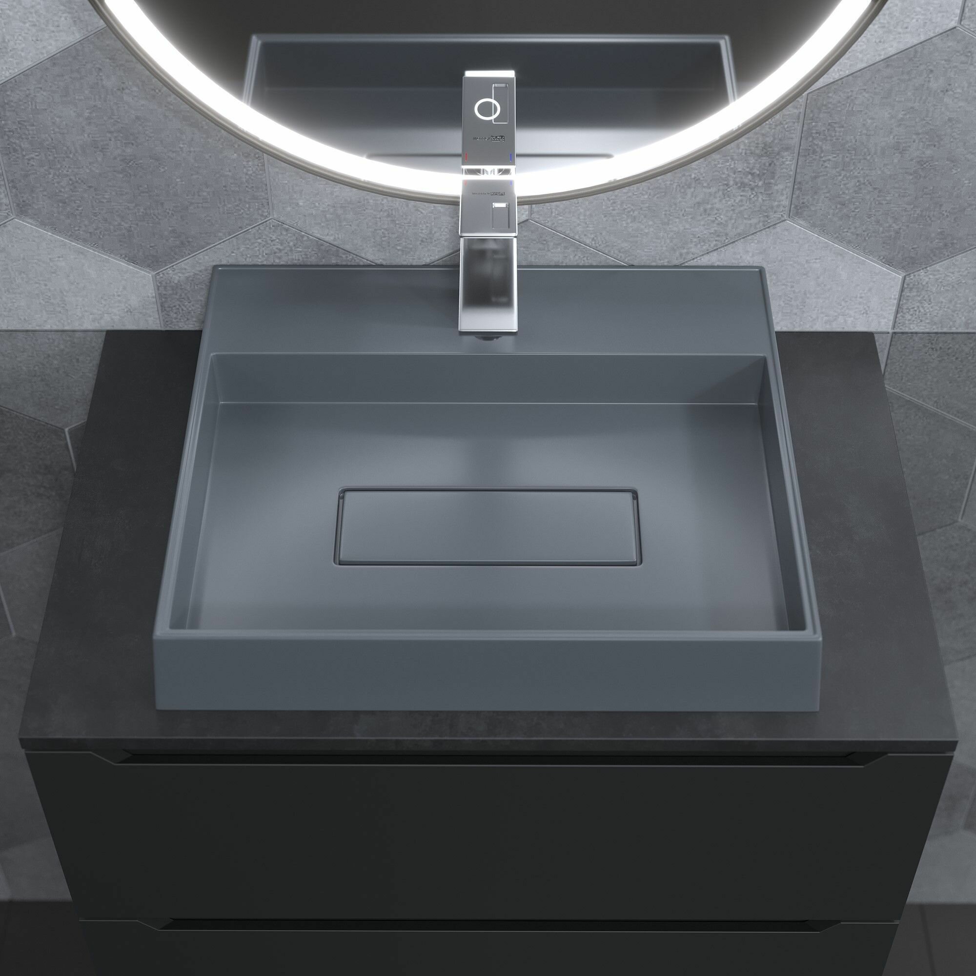 СохранитьРаковина для ванной накладная 50 см, Uperwood Tanos Quartz, прямоугольная, серая, "бетон" интересное: