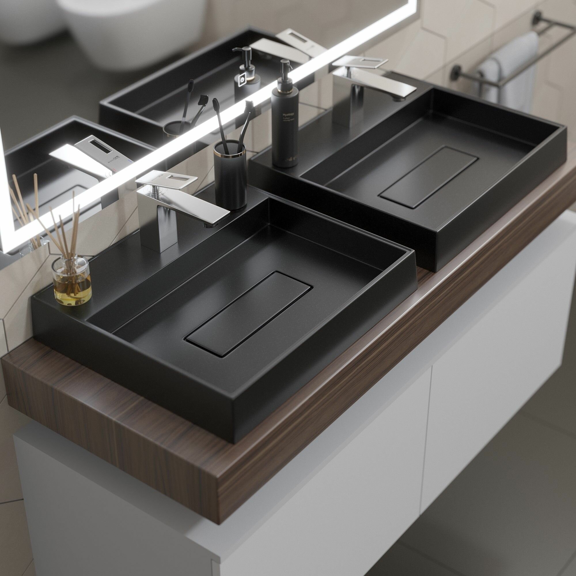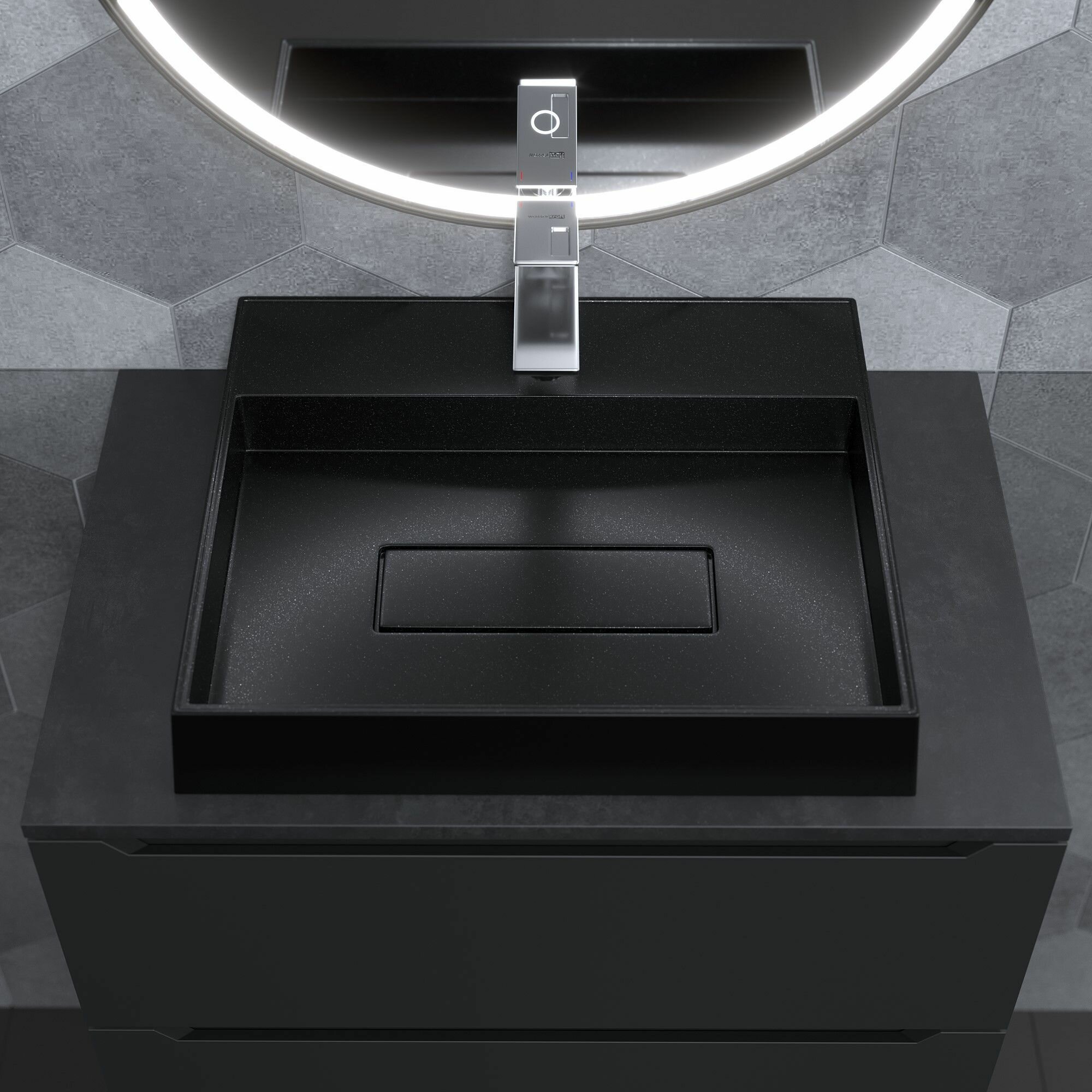 Купить Раковина для ванной накладная 50 см, Uperwood Tanos Quartz, прямоугольная, черная, "космос"