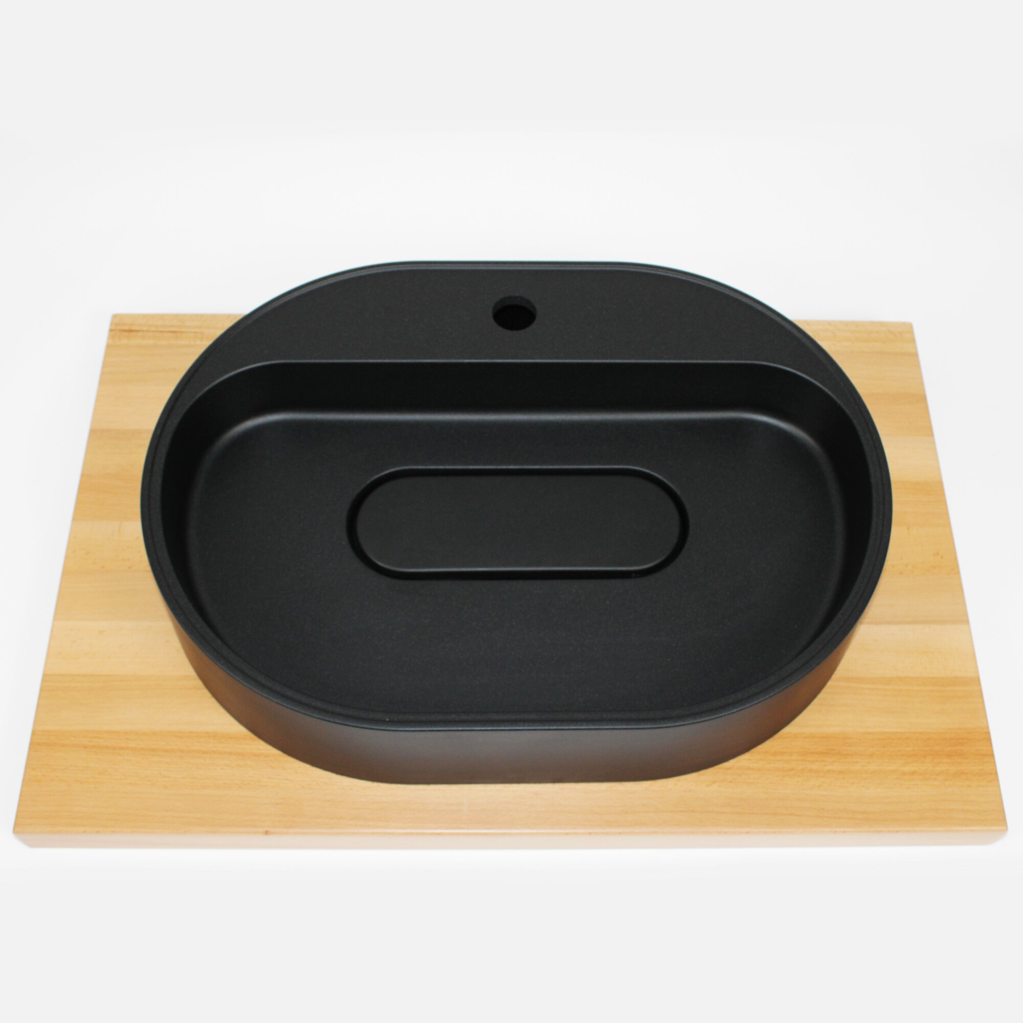 Купить Раковина накладная кварцевая Uperwood Tanos Quartz 55х40х10 см, овальная, черная матовая, космос