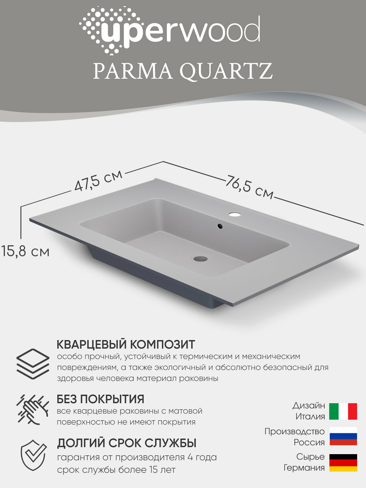 Раковина для ванной 76,5 см, Uperwood Parma Quartz, белая матовая, "жасмин" интересное: