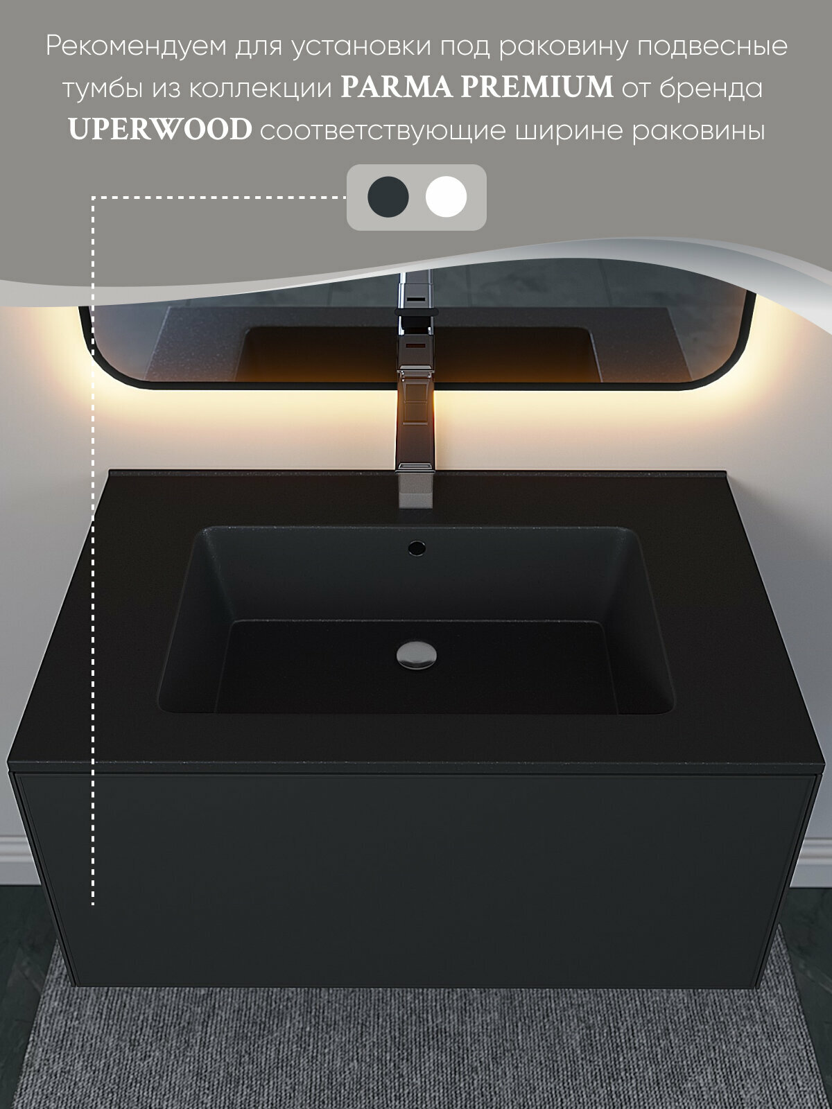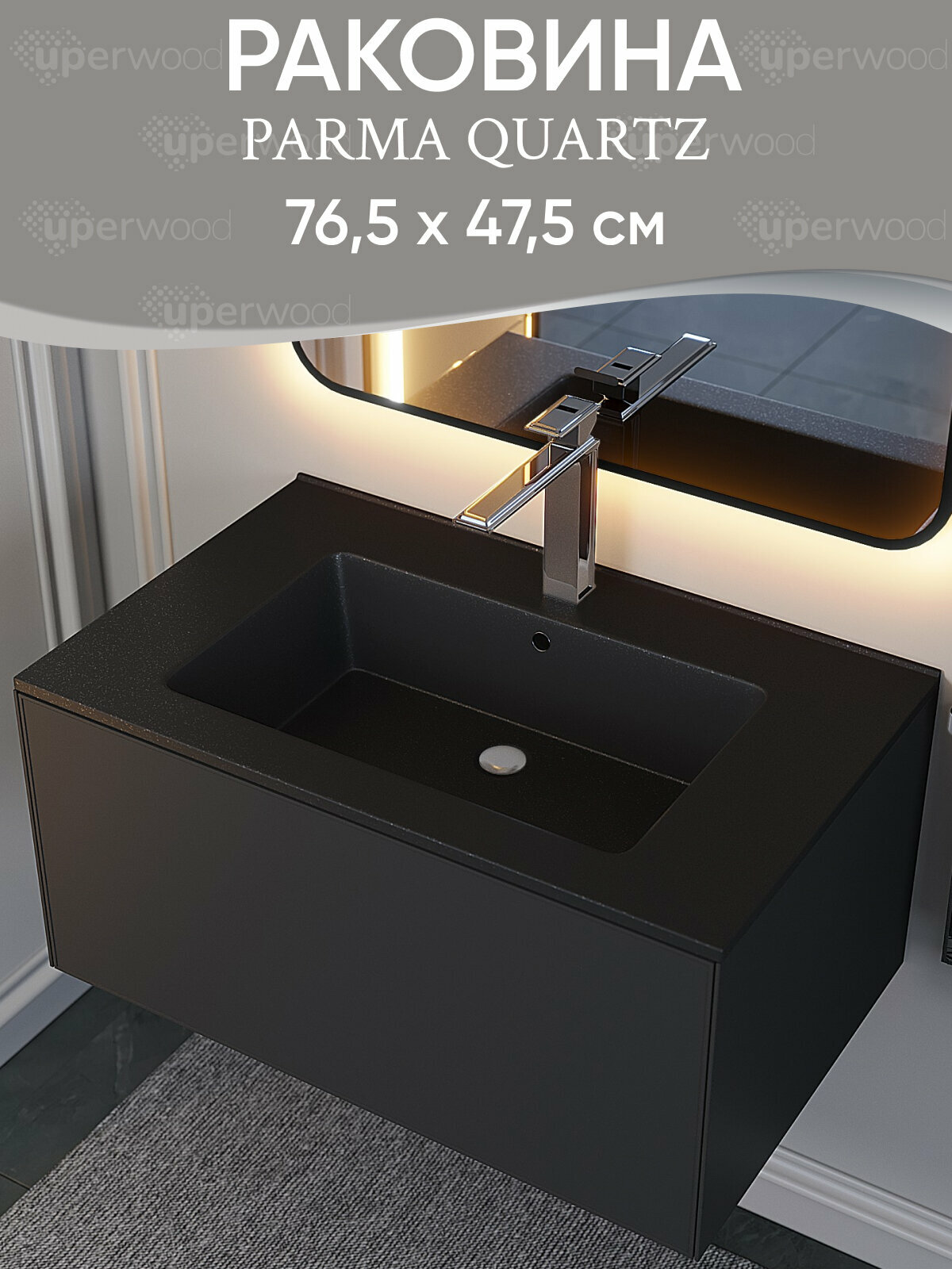 Раковина для ванной 76,5 см, Uperwood Parma Quartz, черная матовая, "космос" интересное: