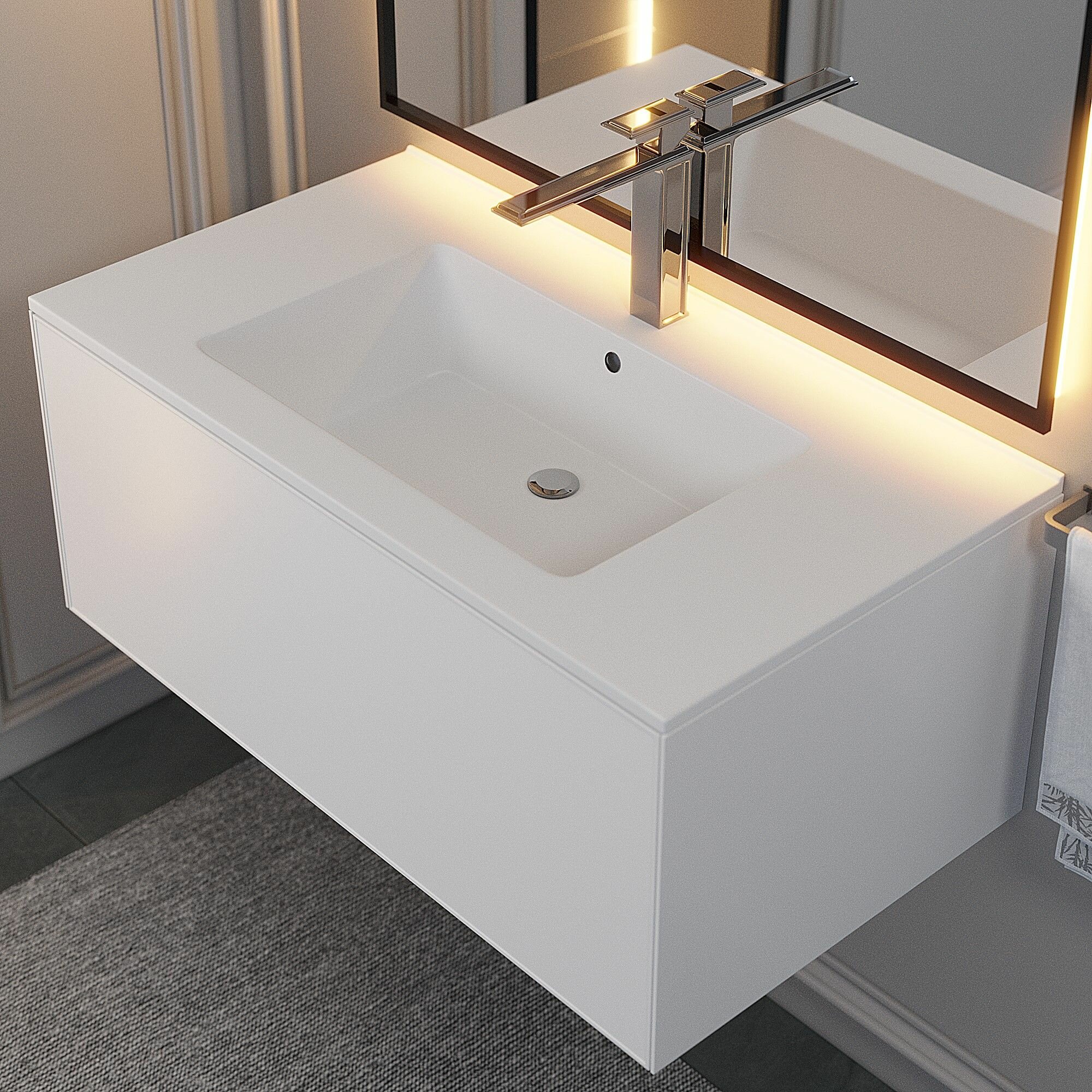 Купить Раковина кварцевая для ванной Uperwood Parma Quartz 85х47,5х15,8 см, белая матовая, жасмин